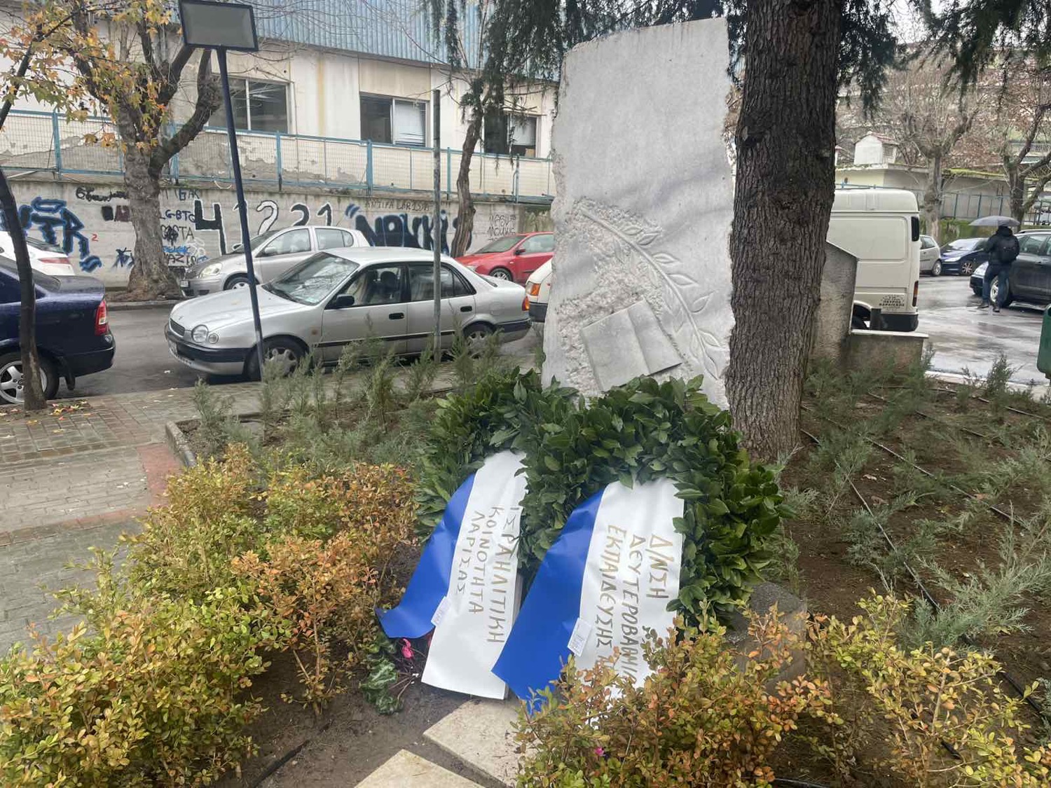 Σε κλίμα συγκίνησης και υπό βροχή πραγματοποιήθηκε η τελετή κατάθεσης στεφάνων από τα σχολεία της Λάρισας στην αναθηματική στήλη της πλατείας Άννα Φρανκ, στη μνήμη των 1.500.000 παιδιών – θυμάτων του Ολοκαυτώματος.