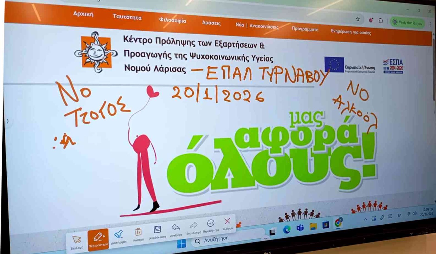 Στο EΠΑΛ Τυρνάβου πραγματοποιήθηκε βιωματική δράση με θέμα τους εθισμούς, κατά την οποία οι μαθητές συμμετείχαν ενεργά σε ομαδικές δραστηριότητες και ασκήσεις. Μέσα από τη συζήτηση και τα βιωματικά παραδείγματα, δόθηκε έμφαση στην κατανόηση των παραγόντων που οδηγούν σε εξαρτητικές συμπεριφορές, καθώς και στη σημασία της πρόληψης, της υπεύθυνης στάσης και της ενίσχυσης δεξιοτήτων ζωής, όπως η επικοινωνία, η αυτογνωσία και η διαχείριση συναισθημάτων.