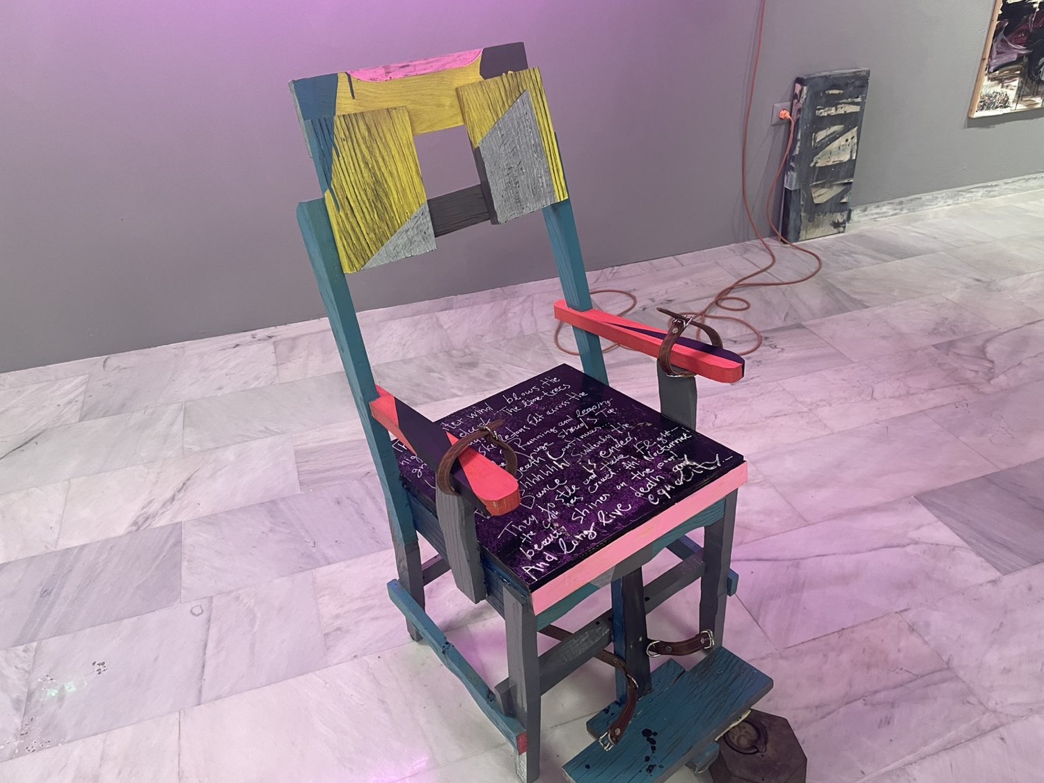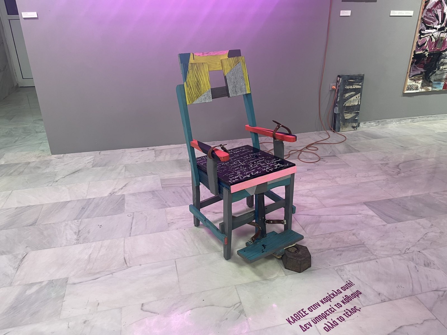 Ακολούθως, η Θεοδώρα Τσιάτσιου: «Καλημέρα και από μένα. Θα ήθελα αρχικά να μιλήσω πρώτα για τη δουλειά μου. Η εικαστική ενότητα που παρουσιάζω εξετάζει πώς το σύγχρονο άτομο στέκεται και τοποθετείται μέσα στον κόσμο που διαμορφώνει. Κεντρικός άξονας είναι η καρέκλα, ένα καθημερινό αντικείμενο που αποδομείται και μετατρέπεται σε πεδίο έντασης, φθοράς και μνήμης, όχι ως ανάπαυση αλλά ως χώρος κατοίκησης της εμπειρίας. Το σώμα απουσιάζει ως ενιαία μορφή και υπονοείται μέσα από ίχνη, παραμορφώσεις και τραύματα της ύλης. Πρόκειται για δομές που δεν αφηγούνται ιστορίες, αλλά τον άνθρωπο που θα τις ενεργοποιήσει.
