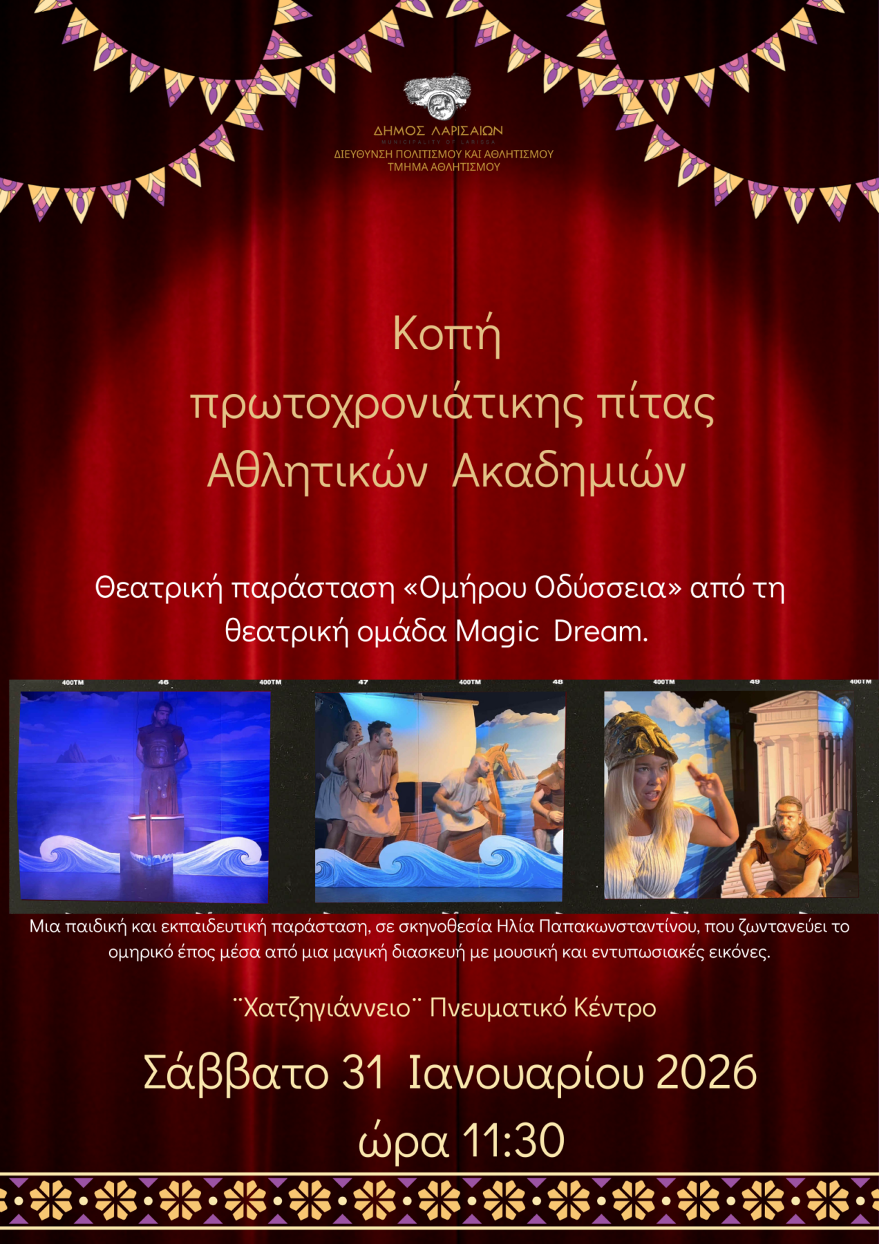 «Μαγική Οδύσσεια» και κοπή πίτας για τα παιδιά των ακαδημιών του Δήμου Λαρισαίων