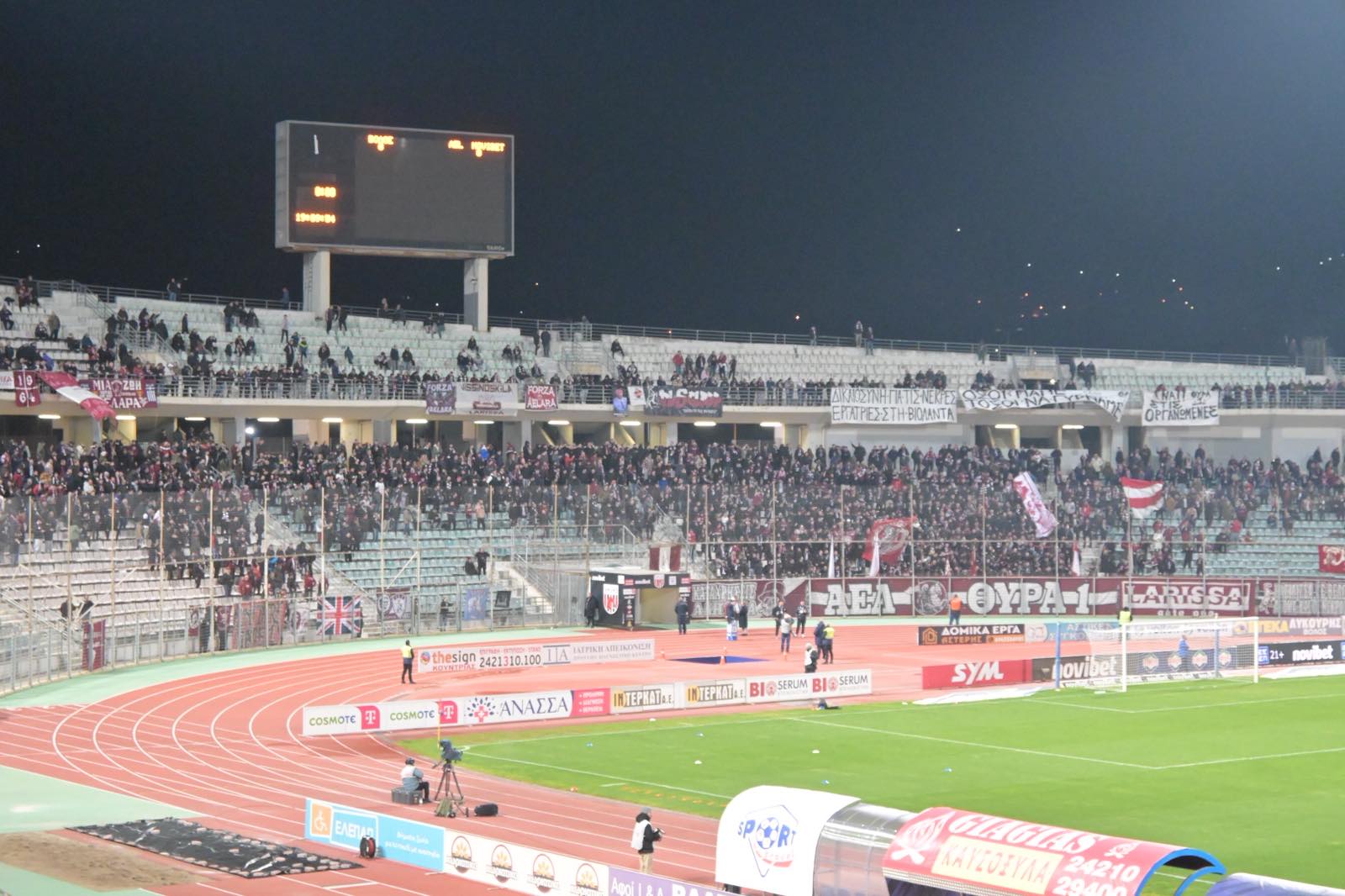 Εντυπωσιακή είναι από νωρίς το απόγευμα η παρουσία των Λαρισαίων φιλάθλων στο Πανθεσσαλικό Στάδιο, εκεί όπου στις 8 το βράδυ, η ΑΕΛ θα αντιμετωπίσει τον ΝΠΣ Βόλος.
