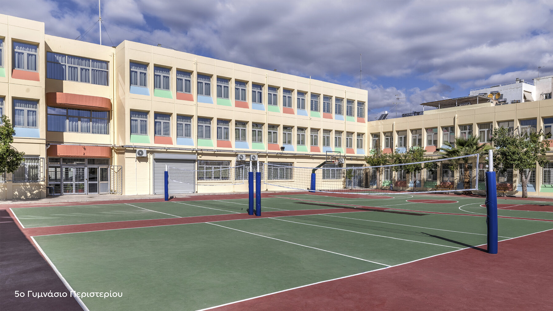 Η αισθητική ταυτότητα των κτιρίων ολοκληρώθηκε με την ειδική επιλογή του χρώματος RAL 7038 Ammos, προσδίδοντας ενιαίο, σύγχρονο και διαχρονικό χαρακτήρα σε ολόκληρο το δίκτυο των σχολικών μονάδων.