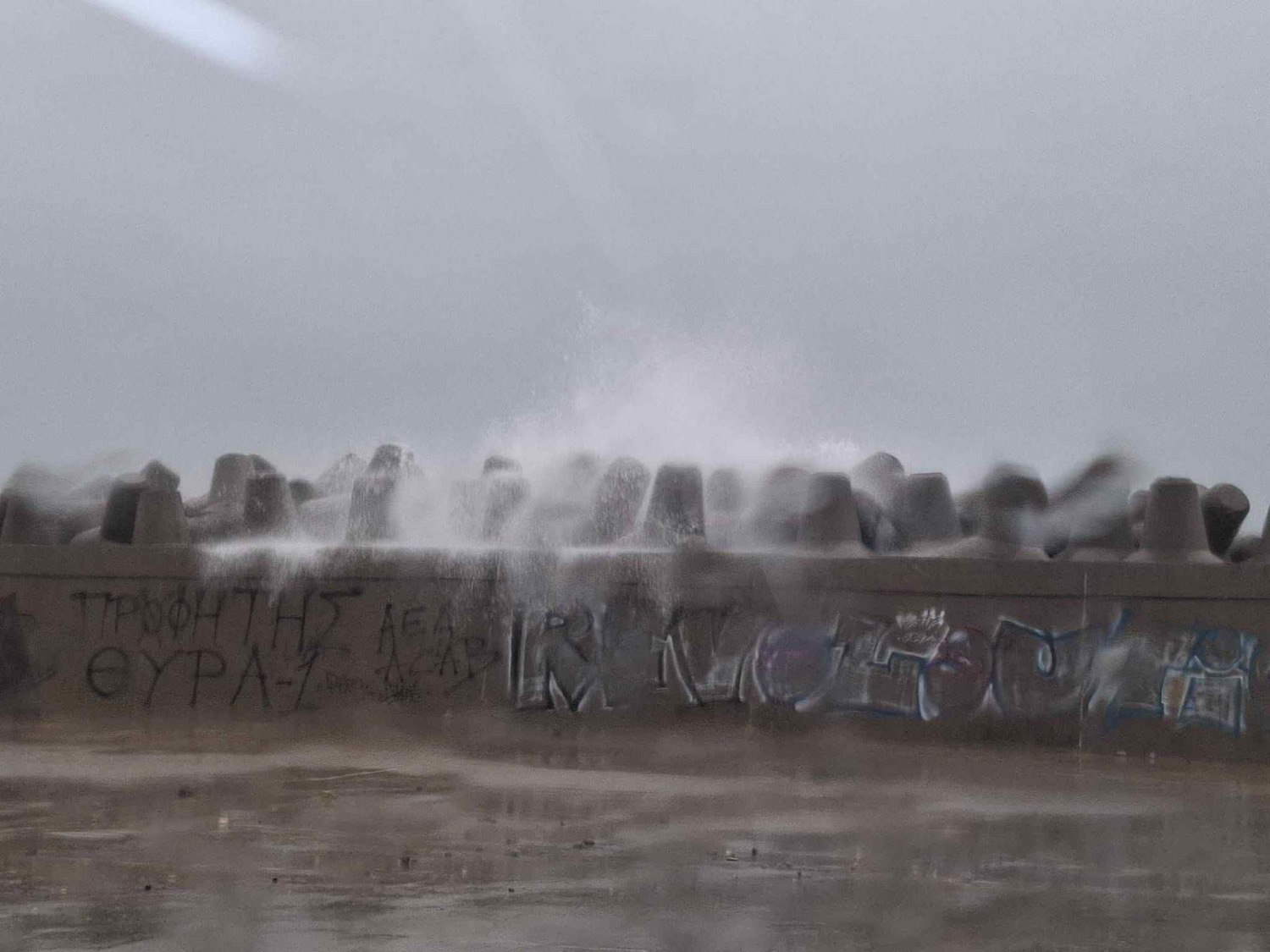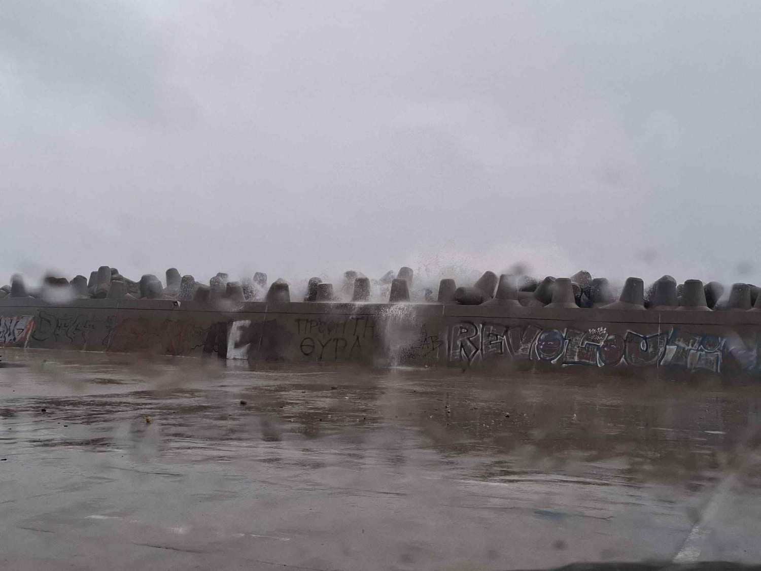 Όπως θα δει κανείς από τις εικόνες που εξασφάλισε το onlarissa.gr, τα κύματα μαίνονται, καλύπτωντας ολόκληρη την έκταση της παραλίας και φτάνοντας μέχρι τα όρια του δρόμου, ο οποίος έχει πλημμυρίσει.