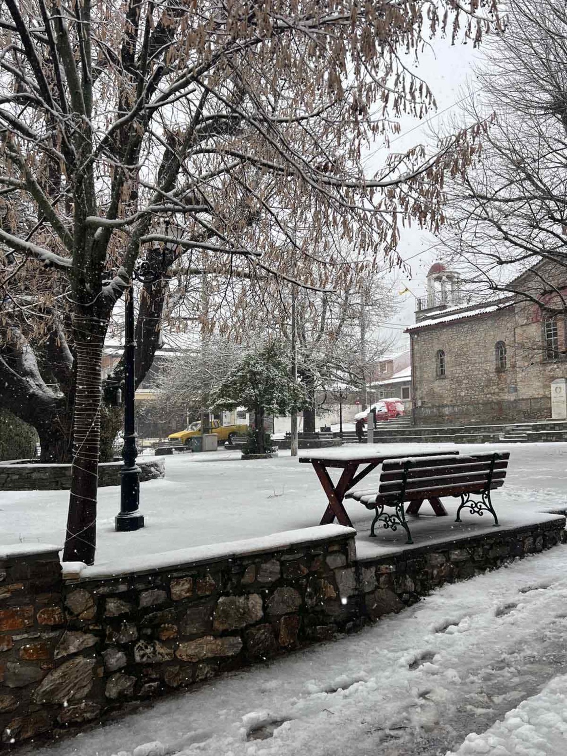 Δείτε φωτογραφίες: Λευκό τοπίο η Καλλιπεύκη Λάρισας – Έντονη χιονόπτωση το πρωί της Κυριακής