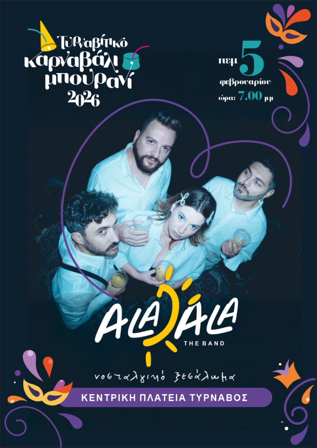 Την Πέμπτη 5 Φεβρουαρίου 2026 θα γίνει η έναρξη των εκδηλώσεων «Τυρναβίτικο Καρναβάλι & Μπουρανί 2026» με ένα μουσικοχορευτικό δρώμενο που θα πραγματοποιηθεί στις 7:00μμ Κεντρική πλατεία Τυρνάβου.