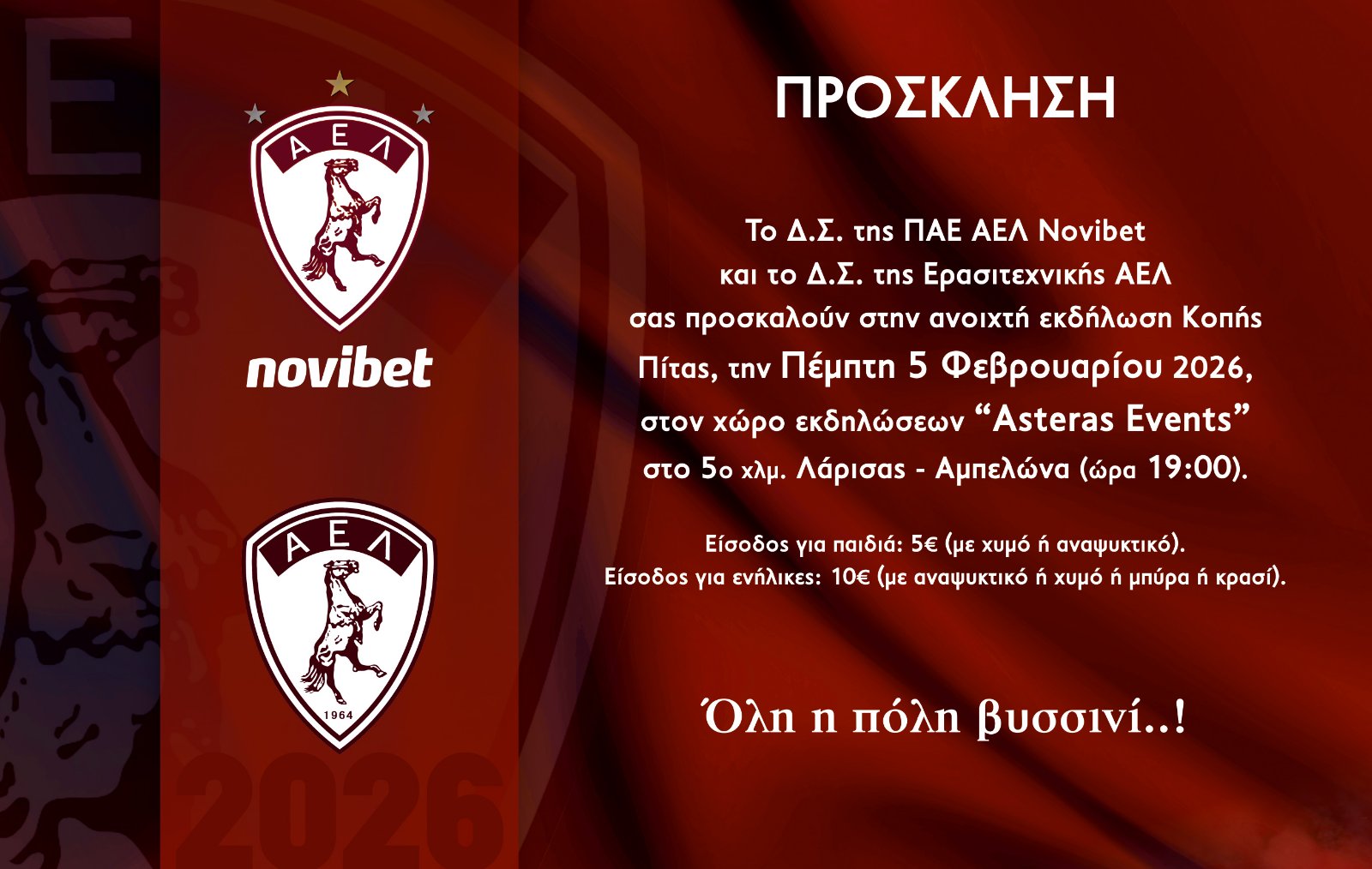 Κοινή… κοπής της πρωτοχρονιάτικης πίτας διοργανώνουν τα Διοικητικά Συμβούλια της ΠΑΕ και Ερασιτεχνικής ΑΕΛ.