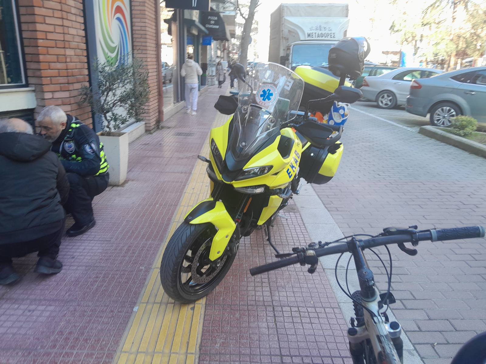 Στο σημείο έσπευσε διασώστης με τη μηχανή του ΕΚΑΒ για να της προσφερθούν οι πρώτες βοήθειες, καθώς επίσης και η αστυνομία.