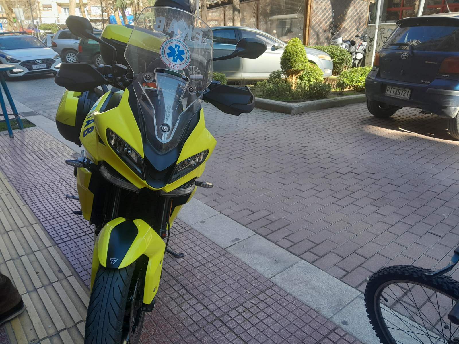 Στο σημείο έσπευσε διασώστης με τη μηχανή του ΕΚΑΒ για να της προσφερθούν οι πρώτες βοήθειες, καθώς επίσης και η αστυνομία.