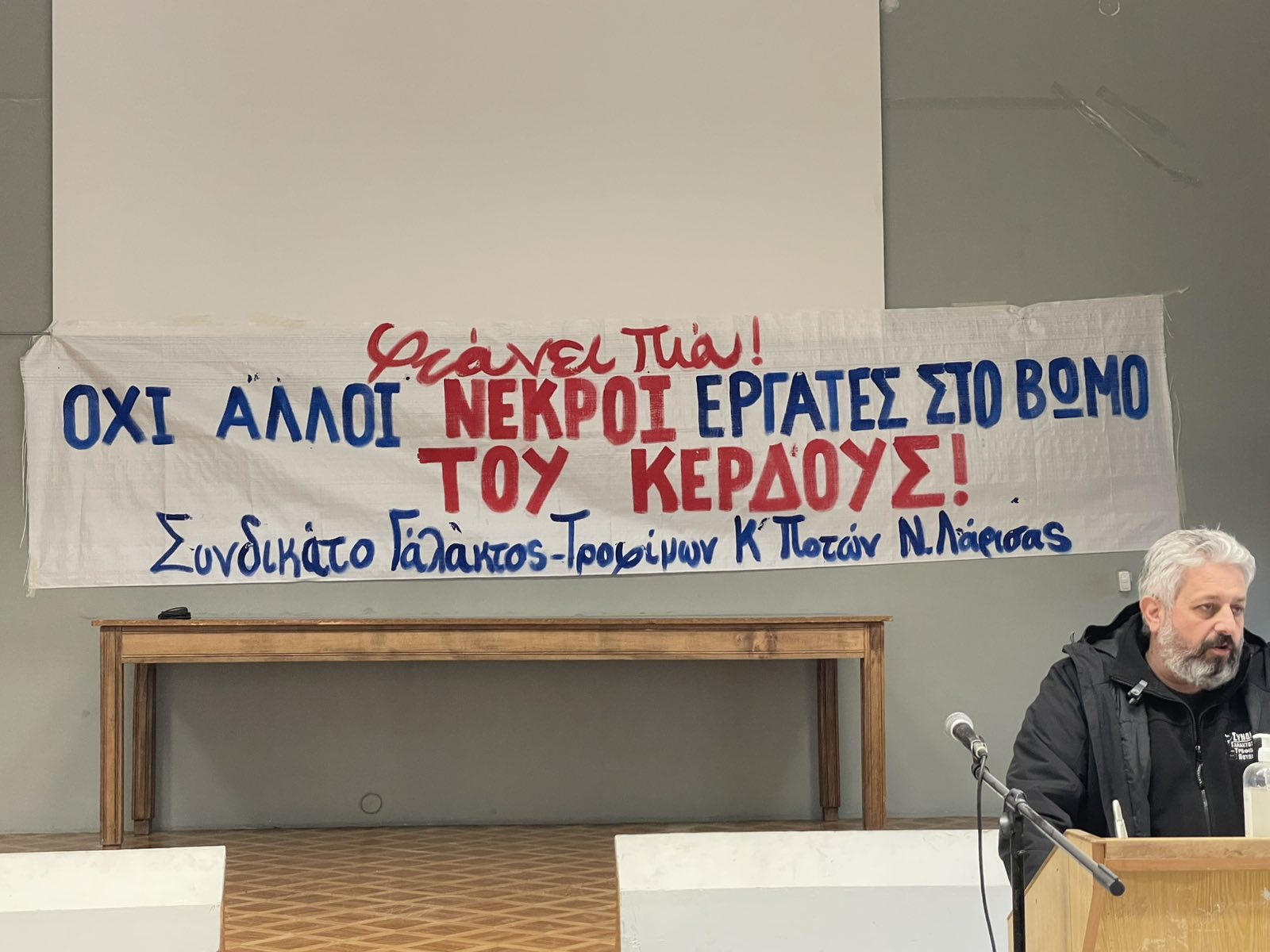 Από την μεριά του ο Γιάννης Σκόκας, Πρόεδρος του Εργατικού Κέντρου Λάρισας ανέφερε: