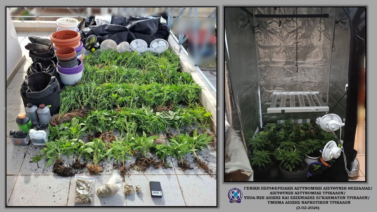 Συνελήφθη στα Τρίκαλα για μεγάλες ποσότητες κάνναβης – Εντοπίστηκε οργανωμένη φυτεία στην οικία του