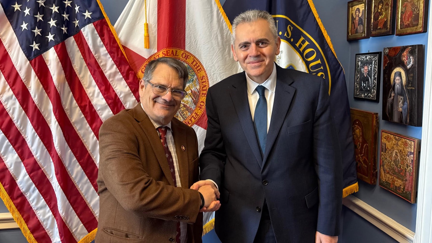 Φωτ 1-3. Ο Μάξιμος Χαρακόπουλος με τον Ελληνοαμερικανό βουλευτή Gus Bilirakis