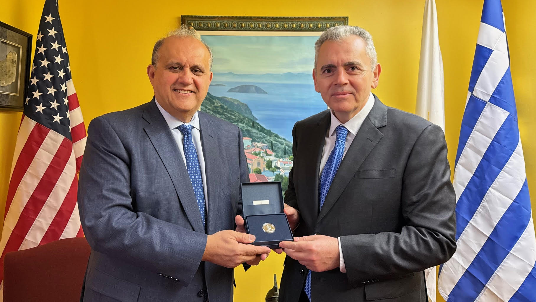 Φωτ. 4,5. Ο επικεφαλής της ΔΣΟ με τον πρόεδρο του AHI Nick Larigakis