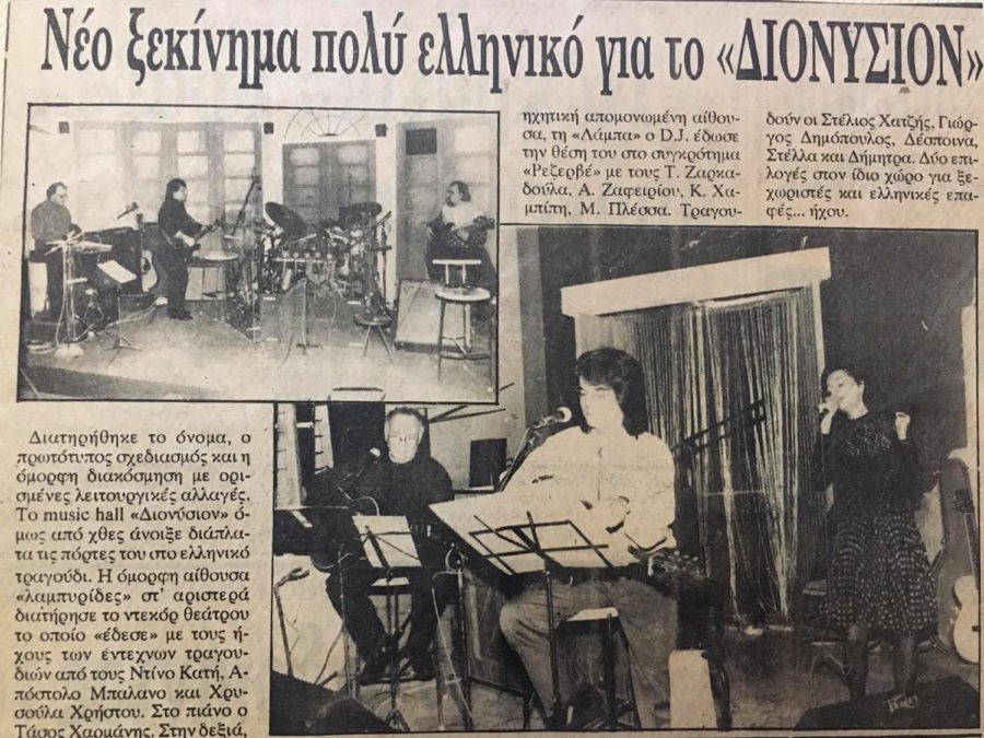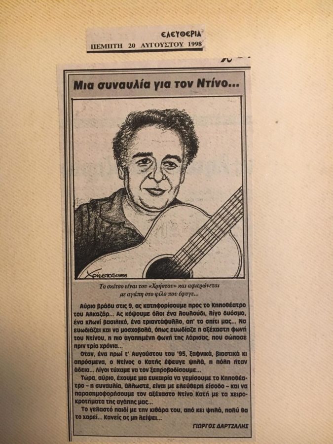 Ημίφως, χαμηλά τραπεζάκια και καρέκλες, τσιγάρο και βερμούτ, ένα πιάνο, μια κιθάρα, μουσικές από το Νέο Κύμα, αλλά και Χατζηδάκις, Θεοδωράκης, Σπανός, Λοίζος και Μούτσης. Συναυλιακή και αισθαντική ατμόσφαιρα. Η φωνή του Ντίνου Κατή οδηγούσε τους Λαρισαίους της δεκαετίας του ΄70 και ΄80 σε μυσταγωγικές βραδιές…