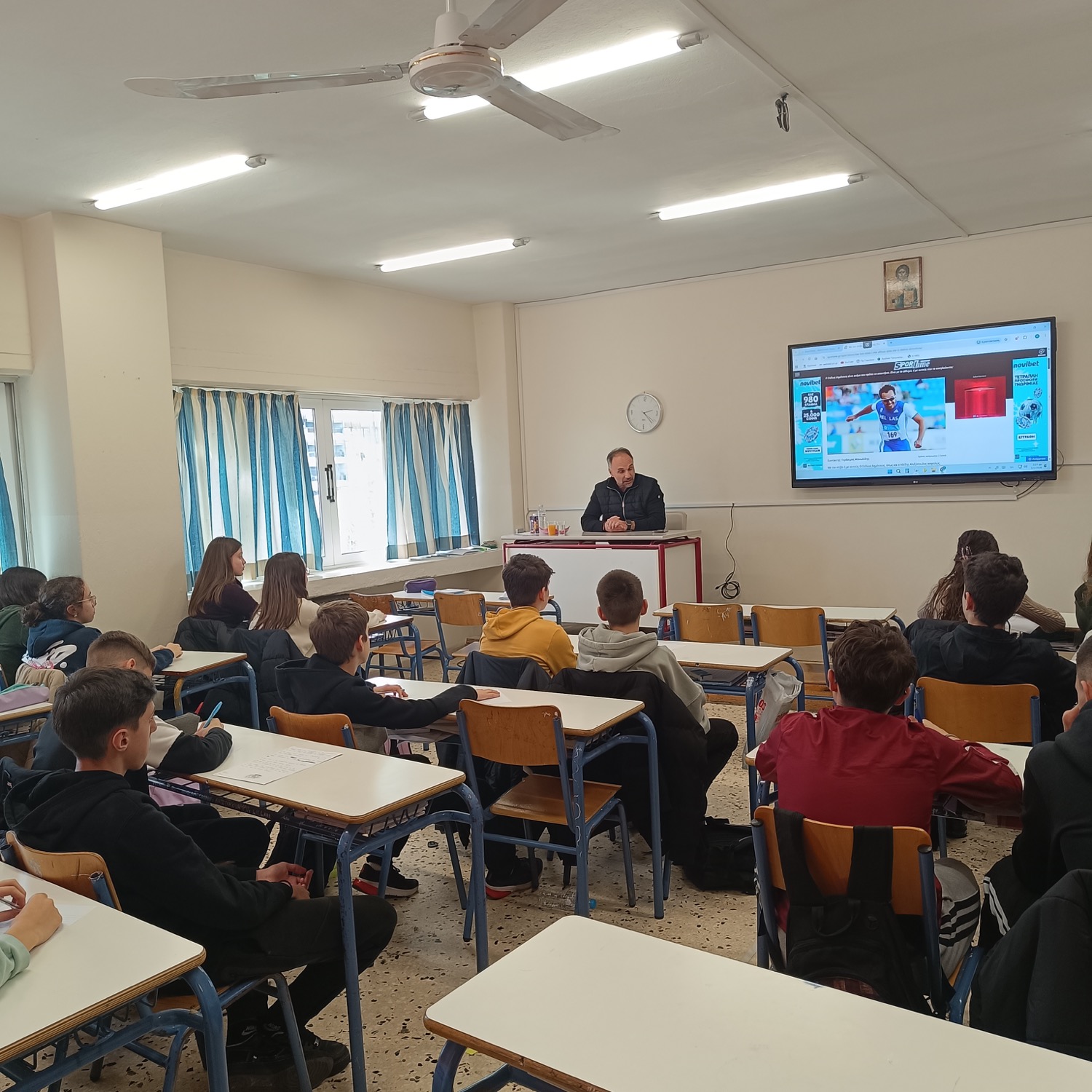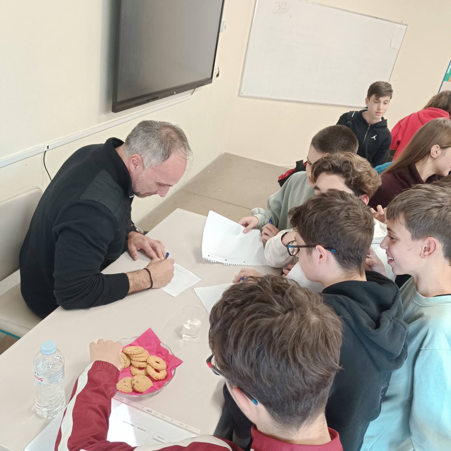 Ο κ. Δημότσιος παραχώρησε συνέντευξη στους μαθητές του Ομίλου, κατά τη διάρκεια της οποίας αναφέρθηκε στην αγωνιστική του διαδρομή και μοιράστηκε εμπειρίες από το υψηλότερο επίπεδο του παγκόσμιου αθλητισμού, φωτίζοντας τις δυσκολίες, τις θυσίες και τις αξίες που διαμόρφωσαν την πορεία του στον πρωταθλητισμό. Παράλληλα, ανέδειξε τη σημασία της επιμονής, της πειθαρχίας και της ψυχικής αντοχής, καθώς και τον ρόλο του αθλητισμού στη διαμόρφωση χαρακτήρα.