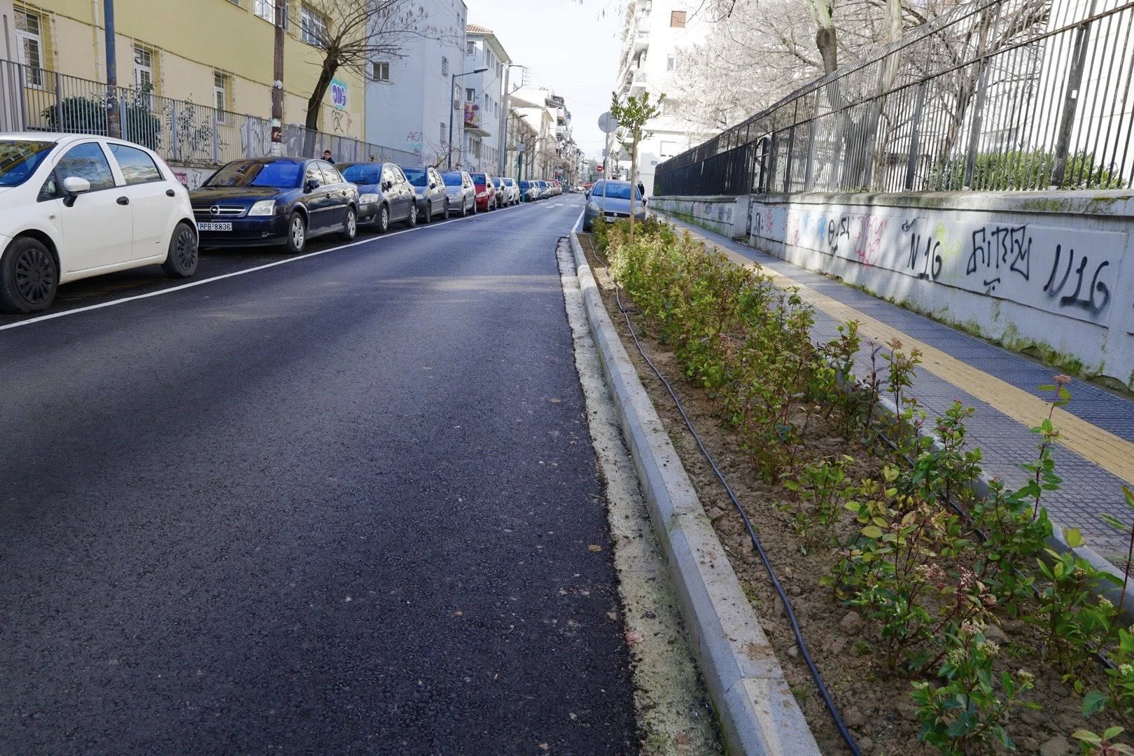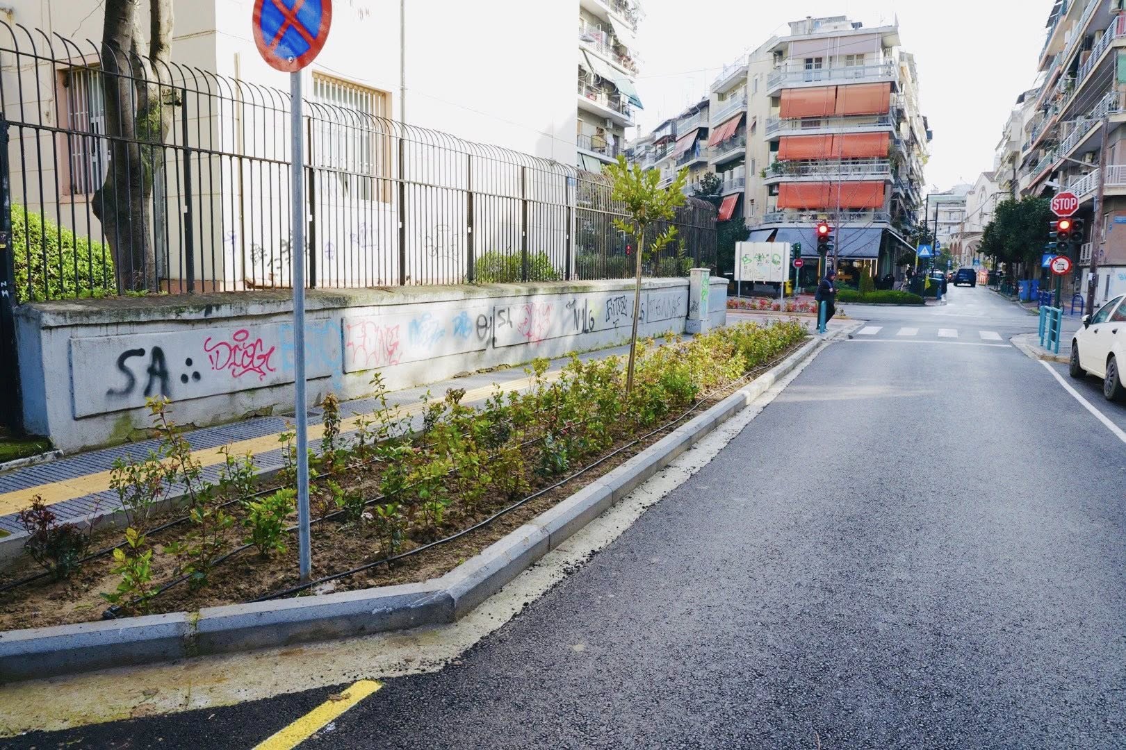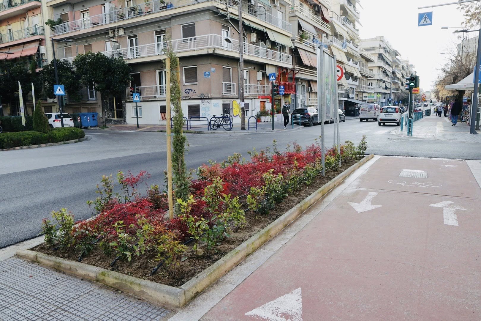 Έτοιμα τα παρτέρια στη συμβολή των οδών Ανθίμου Γαζή και Ηπείρου, με τη Διεύθυνση Πρασίνου να προχωρά σε εργασίες φύτευσης, στο πλαίσιο του έργου της πλήρους ανακατασκευής των οδών.