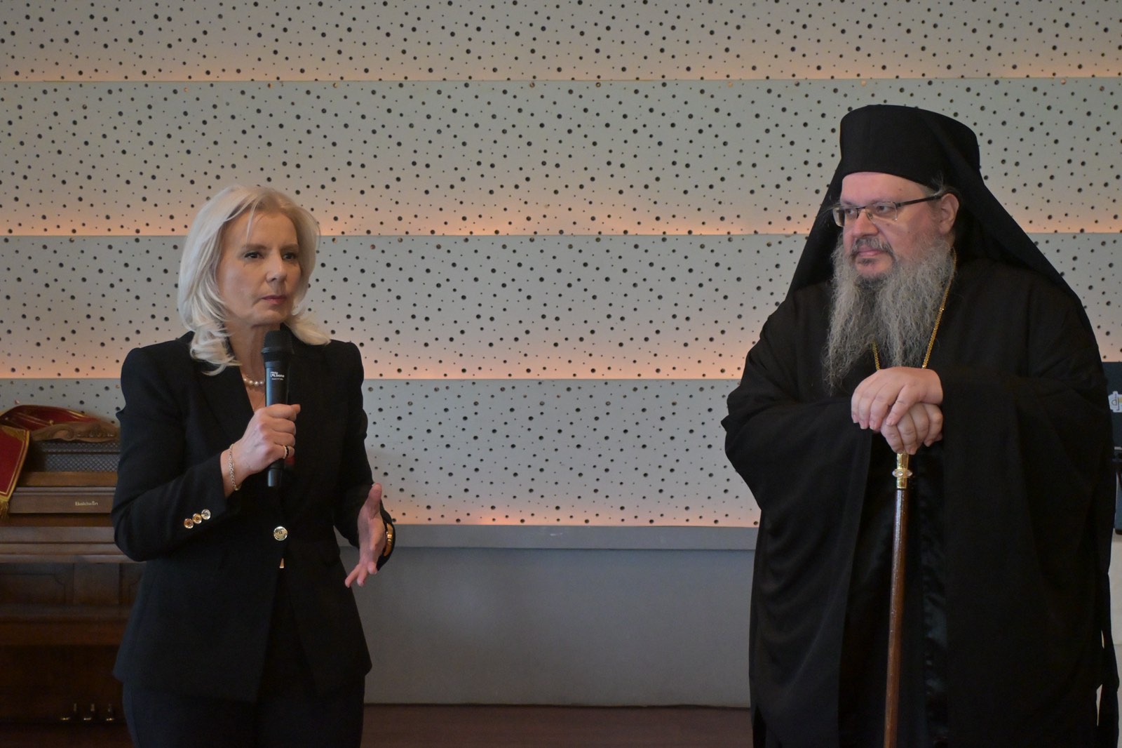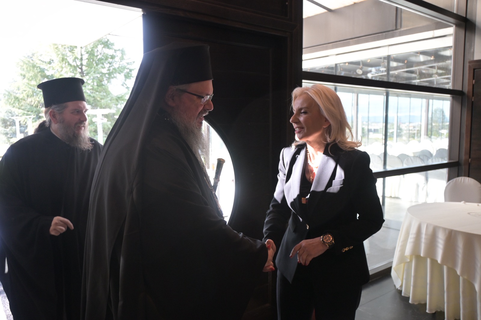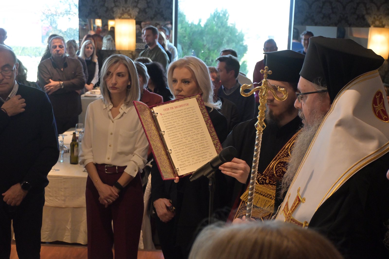 Την πίτα ευλόγησε ο Σεβασμιότατος Μητροπολίτης Λαρίσης και Τυρνάβου κ.κ. Ιερώνυμος, στην παρουσία του οποίου στάθηκε η Γενική Γραμματέας, λέγοντας πως αυτή του ακριβώς η παρουσία δίνει ιδιαίτερη αξία στην εκδήλωση. «Το ποιμαντικό σας έργο, ο λόγος σας, η ουσιαστική στήριξή σας στην κοινωνία, αποτελούν σημείο αναφοράς για όλους μας», σημείωσε χαρακτηριστικά .