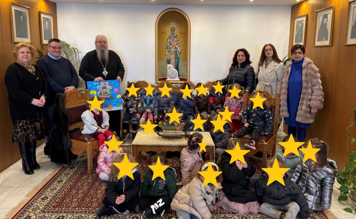 Ο Σεβασμιώτατος συνομίλησε με τα μικρά παιδιά για την αξία της αλληλεγγύης, της αγάπης προς το συνάνθρωπο και της αδελφοσύνης, μοίρασε γλυκίσματα και ευχήθηκε να έχουν την ευλογία του Κυρίου στη ζωή τους.