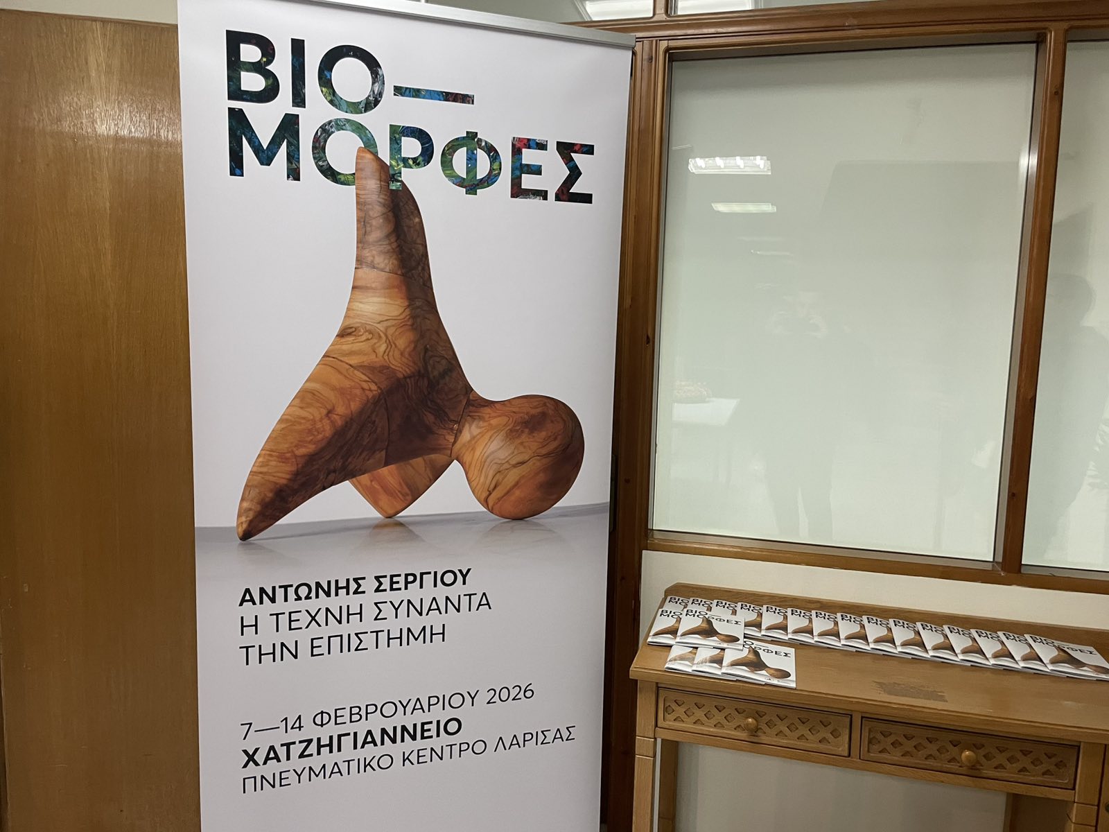 Πραγματοποιήθηκαν το Σάββατο 7 Φεβρουαρίου 2026, στις 19:00, στο Χατζηγιάννειο Πνευματικό Κέντρο Λάρισας τα εγκαίνια της εικαστικής έκθεσης «Βιο-Μορφές» του καλλιτέχνη Αντώνη Σεργίου, η οποία διοργανώθηκε από το Τμήμα Βιοχημείας και Βιοτεχνολογίας του Πανεπιστημίου Θεσσαλίας, στο πλαίσιο του εορτασμού των 25 χρόνων λειτουργίας του Τμήματος.