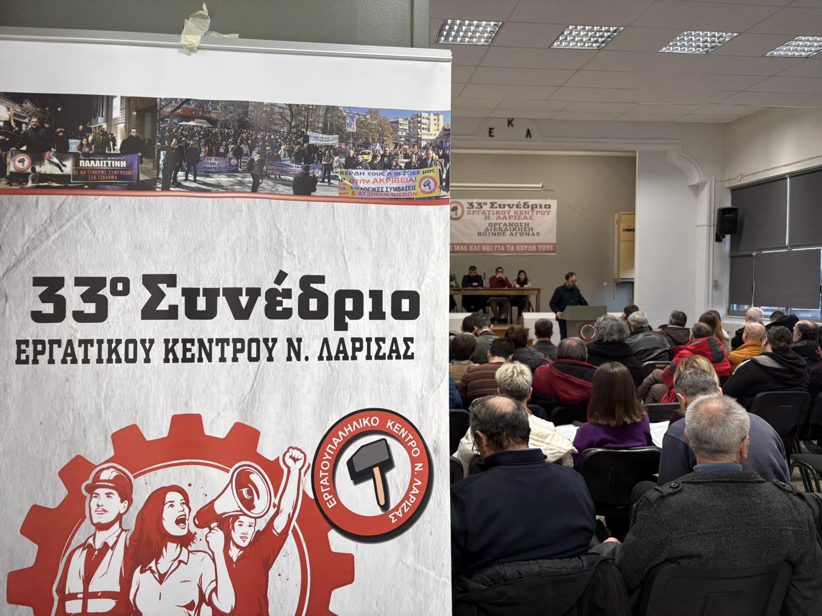 To 33o Εκλογοαπολογιστικό Συνέδριο των Αντιπροσώπων των Σωματείων του Εργατικού Κέντρου Λάρισας λαμβάνει χώρα σήμερα το πρωί της Κυριακής στο κτίριο του ΕΚΛ.