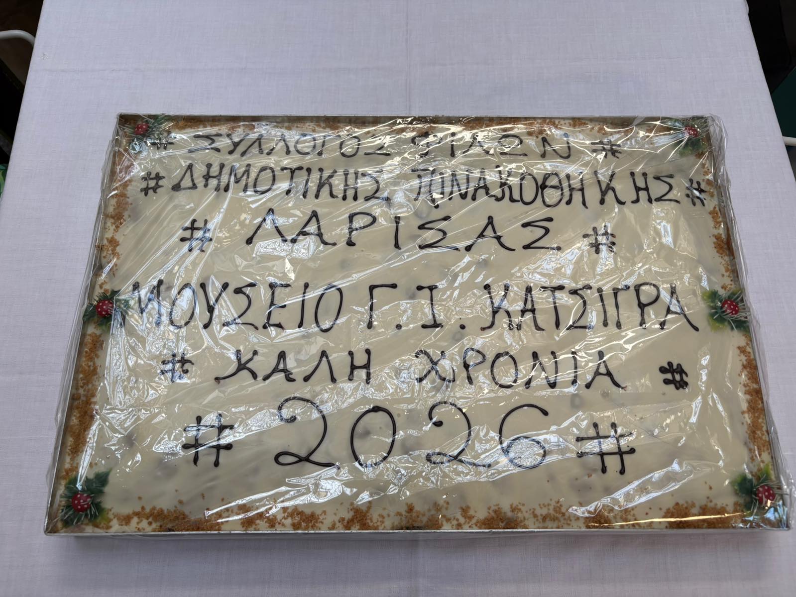 Την καθιερωμένη κοπή πρωτοχρονιάτικης πίτας πραγματοποίησε σήμερα το πρωί της Κυριακής ο Σύλλογος «Φίλοι Δημοτικής Πινακοθήκης Λάρισας – Μουσείου Γ.Ι. Κατσίγρα (Δ.Π.Λ.-Μ.Γ.Ι.Κ.)» στο καφέ της Πινακοθήκης.
