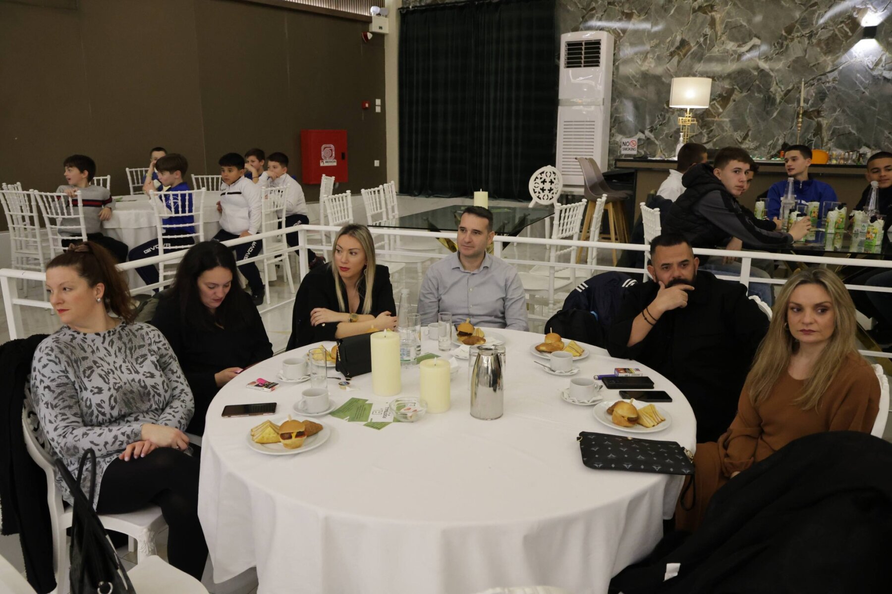 Διοικούντες, προπονητές, ποδοσφαιριστές όλων των τμημάτων, επίσημοι καλεσμένοι, γονείς των παιδιών των ακαδημιών και φίλοι του Απόλλωνα γέμισαν την αίθουσα, δημιουργώντας μια όμορφη, ζεστή και άκρως ποδοσφαιρική ατμόσφαιρα.