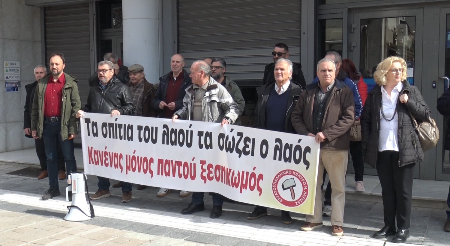 Διαμαρτυρία στη Λάρισα για πλειστηριασμό πρώτης κατοικίας επαγγελματία (φωτό – βίντεο)