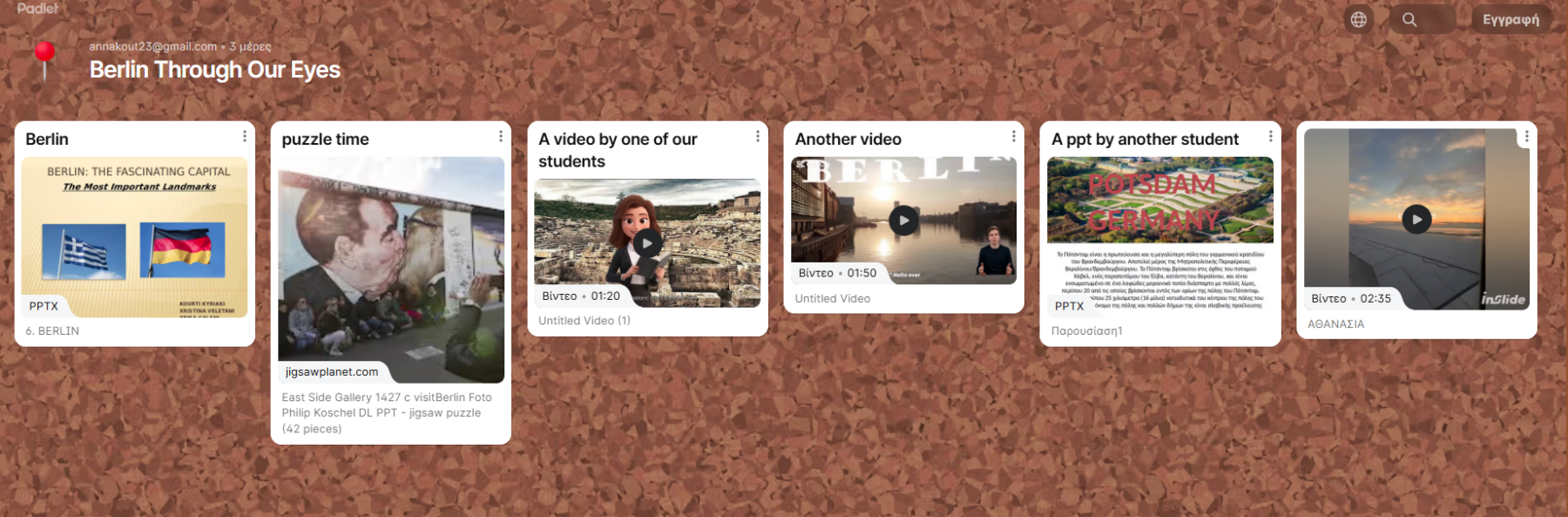 Πολύτιμο κομμάτι αυτής της διαδρομής υπήρξε η ενεργός εμπλοκή των μαθητών και των μαθητριών μας στη δημιουργία εργασιών (projects). Πριν από το ταξίδι, οι ομάδες εργάστηκαν πάνω στην ιστορία και τον πολιτισμό του προορισμού τους, ενώ μετά την επιστροφή τους, μετέτρεψαν τις εικόνες και τις γνώσεις τους σε πρωτότυπο υλικό. Οι εργασίες αυτές δεν είναι απλώς αποτυπώσεις αναμνήσεων, αλλά η απόδειξη της βαθιάς κατανόησης των αξιών που πρεσβεύει η Ευρωπαϊκή Ένωση: της ενότητας, του σεβασμού στη διαφορετικότητα και της αειφόρου ανάπτυξης.Για να μοιραστεί αυτόν τον πλούτο εμπειριών και δημιουργίας με την ευρύτερη σχολική κοινότητα, συγκεντρώθηκε το υλικό των παιδιών σε έναν ψηφιακό πίνακα (Padlet).