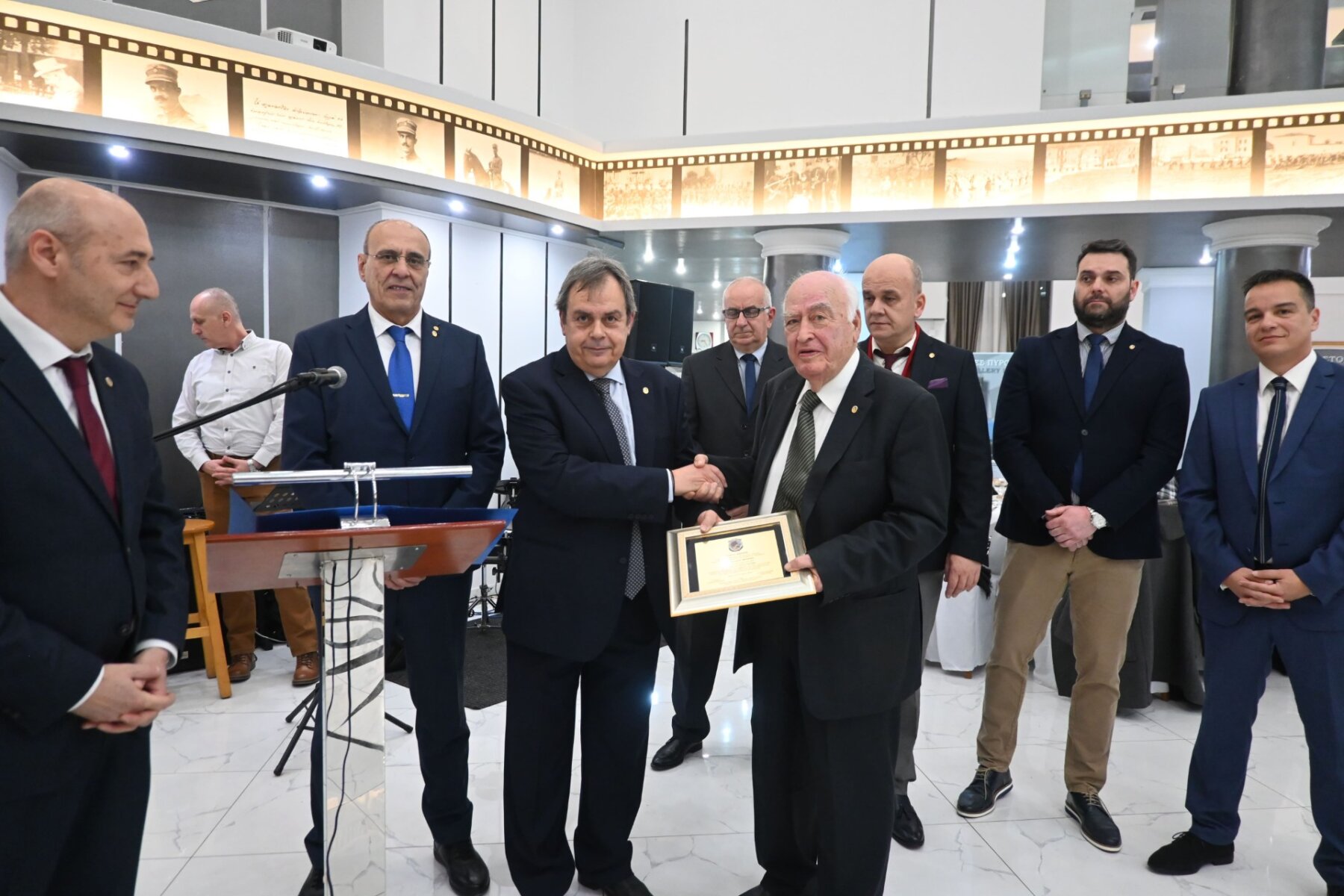 Σημαντική στιγμή της βραδιάς αποτέλεσε η ομόφωνη απόφαση του Διοικητικού Συμβουλίου να ανακηρύξει επίτιμο πρόεδρο τον επί σειρά ετών πρόεδρο του Συνδέσμου, κ. Απόστολο Βερέμη. Η απονομή της τιμητικής πλακέτας έγινε σε κλίμα έντονης συγκίνησης, με τον κ. Βερέμη να ευχαριστεί τα μέλη για την τιμή και να τονίζει τη σημασία της ενότητας και της συνέχισης της κοινής προσπάθειας.