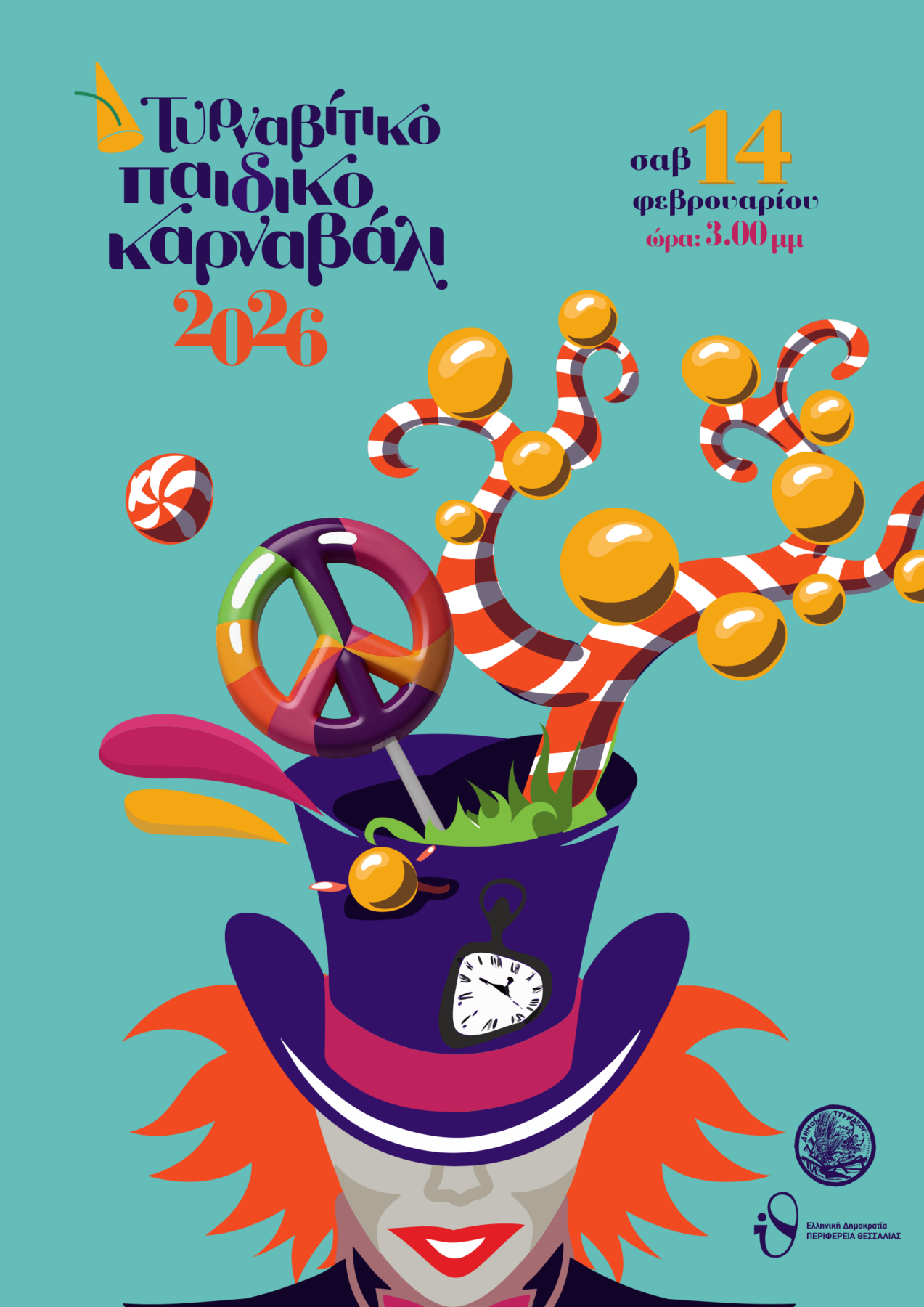 Η παρέλαση των μικρών καρναβαλιστών θα ξεκινήσει στις 3:00 το μεσημέρι και μετά το τέλος της παρέλασης θα ακολουθήσει ψυχαγωγικό πρόγραμμα και δράσεις στην Κεντρική Πλατεία Τυρνάβου.