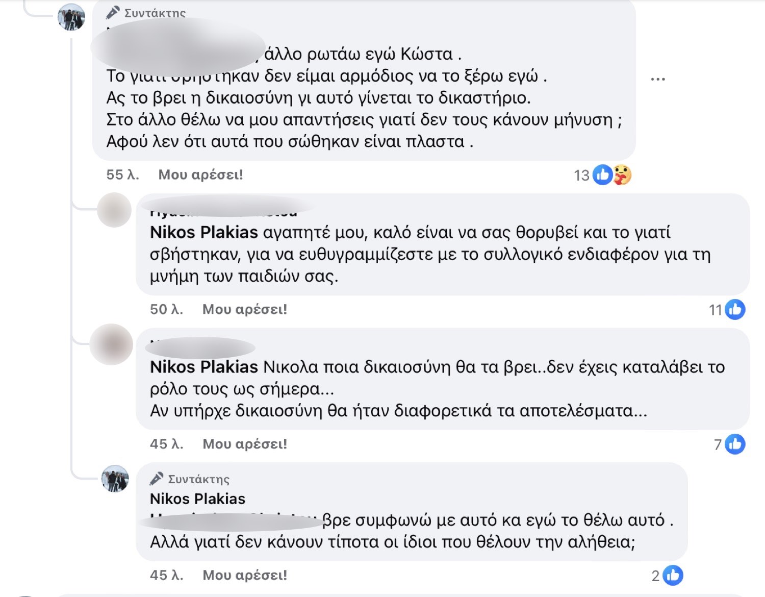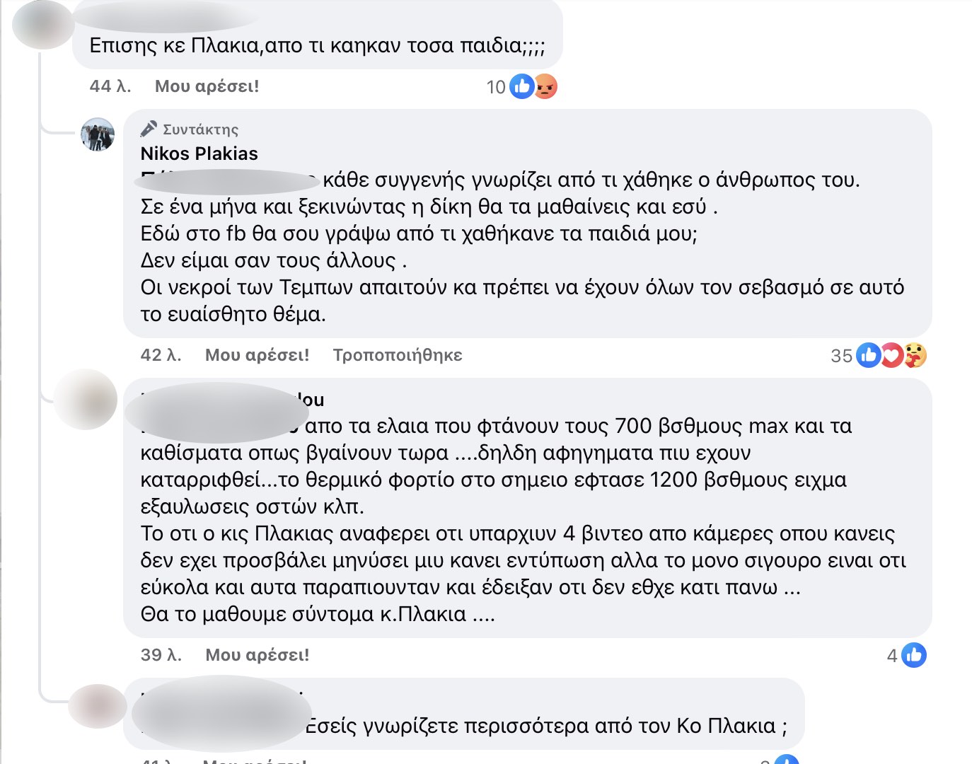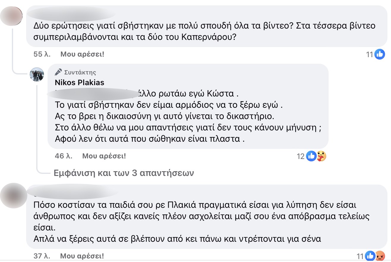 Δείτε μερικά από τα σχόλια και τις απαντήσεις του Ν. Πλακιά: