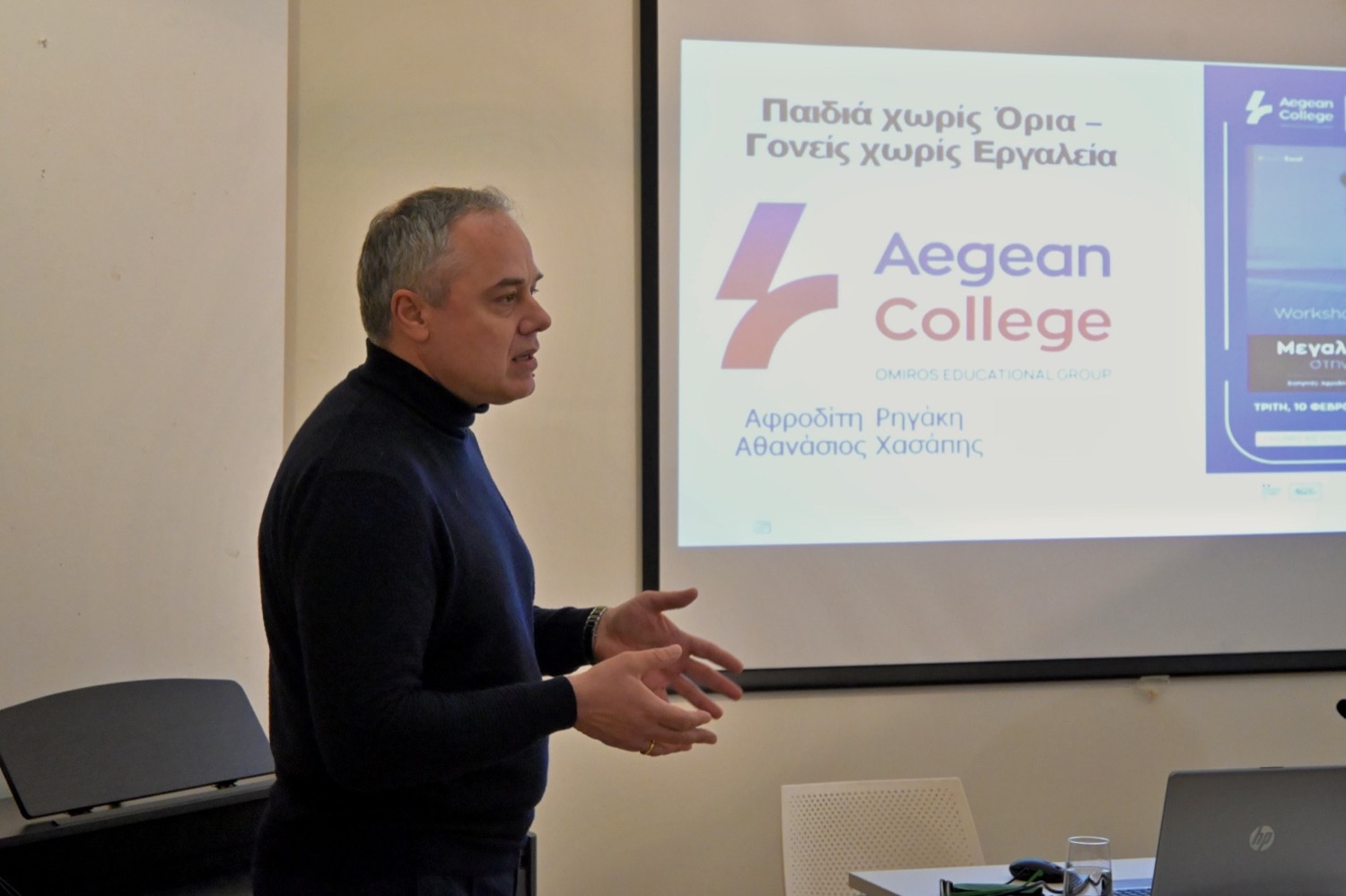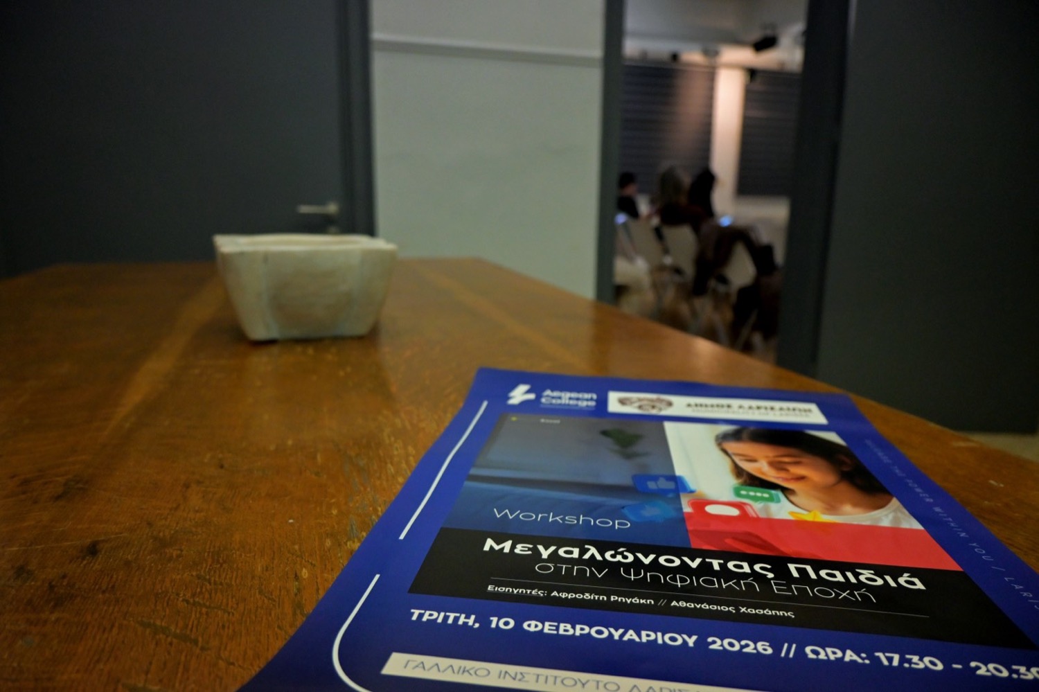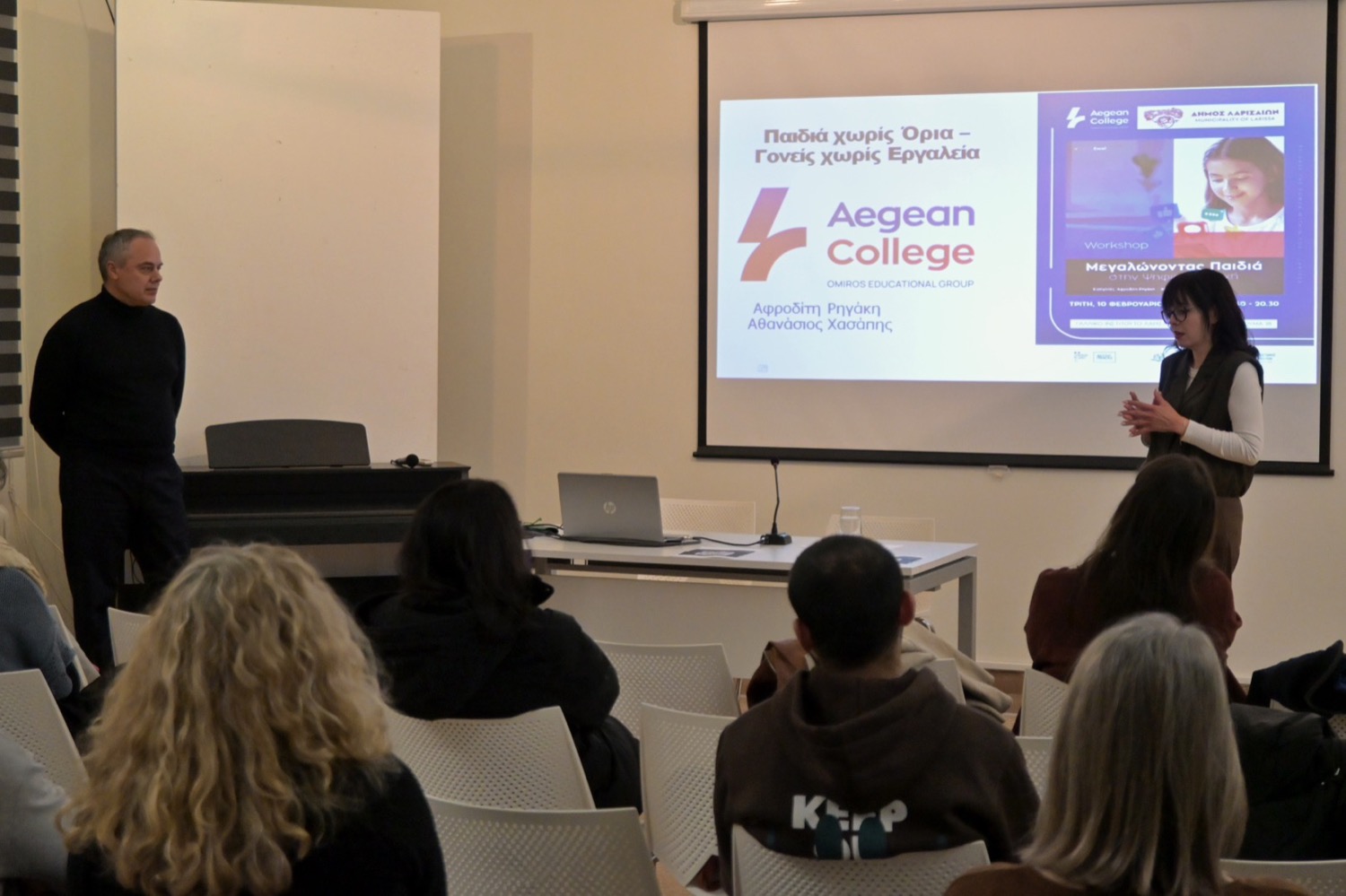 Με επιτυχία πραγματοποιήθηκε το απόγευμα της Τρίτης 10 Φεβρουαρίου 2026 το διαδραστικό εργαστήριο με τίτλο «Μεγαλώνοντας Παιδιά στην Ψηφιακή Εποχή», το οποίο διοργάνωσε η Αντιδημαρχία Παιδείας του Δήμου Λαρισαίων σε συνεργασία με τη Σχολή Πληροφορικής και Νέων Τεχνολογιών του Aegean College Λάρισας.