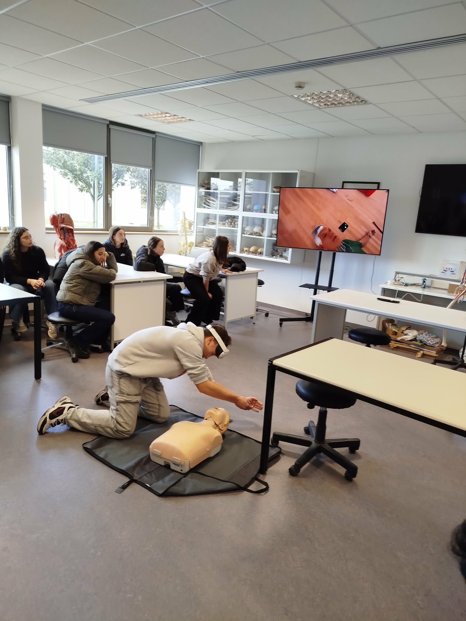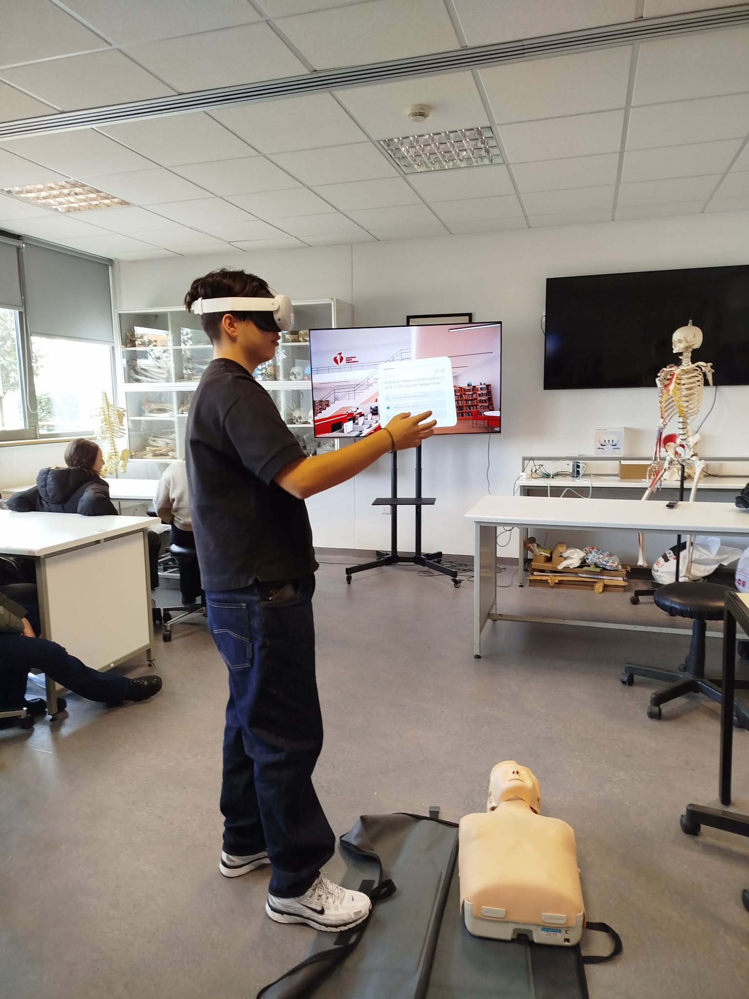 Οι μαθητές και οι μαθήτριες είχαν την ευκαιρία να εκπαιδευτούν σε ρεαλιστικά σενάρια επειγουσών καταστάσεων, αξιοποιώντας τεχνολογία εικονικής πραγματικότητας (VR), με θεματικές: