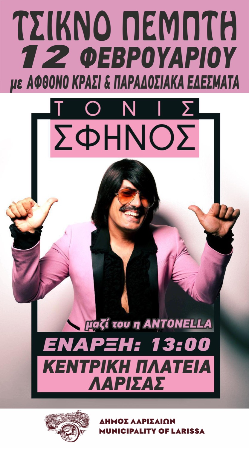 Δήμος Λαρισαίων: Τσικνοπέμπτη στην Κεντρική πλατεία με Τόνι Σφήνο – Πυρετώδεις οι προετοιμασίες για τις εκδηλώσεις της Αποκριάς