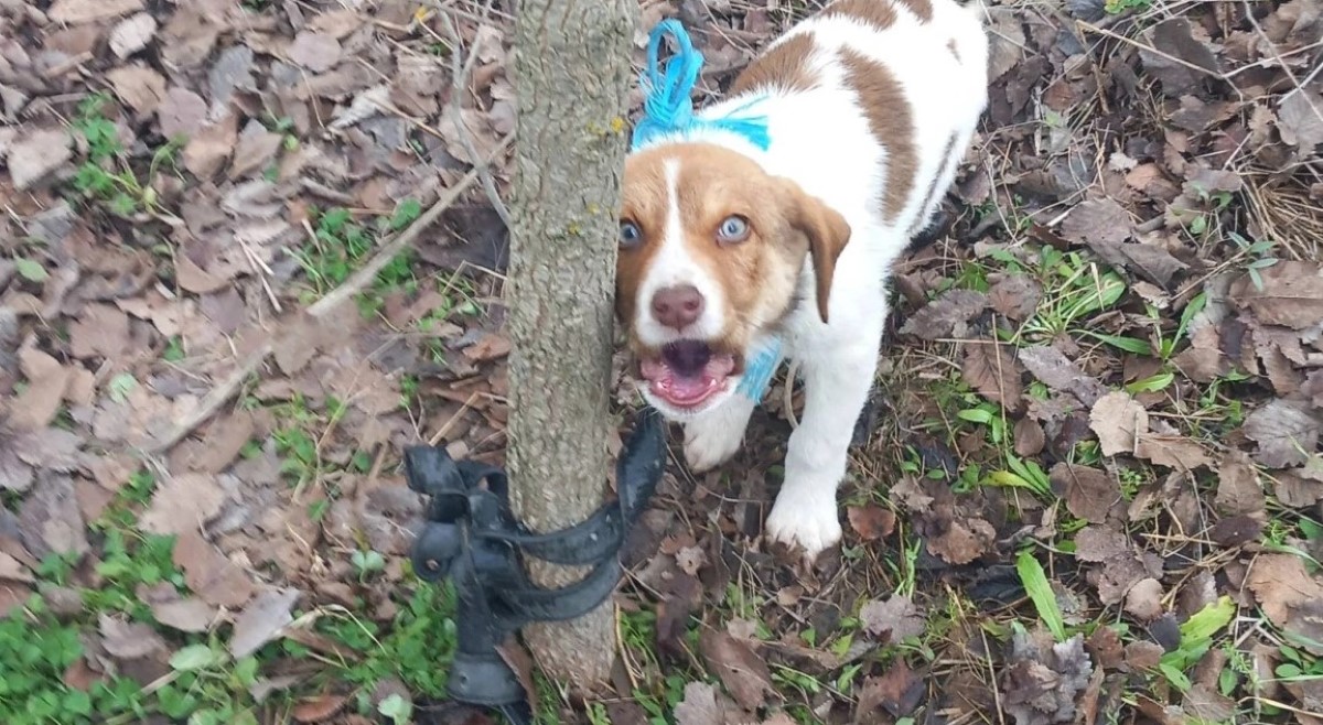 Η τριών μηνών σκυλίτσα βρέθηκε στις 24 Ιανουαρίου από μια κάτοικο της περιοχής που είχε βγάλει βόλτα το σκυλάκι της. Άκουσε τις κραυγές πόνου του κουταβιού και έσπευσε να καλέσει σε βοήθεια μέλη φιλοζωικής ομάδας. Το 3 μηνών σκυλάκι ήταν δεμένο από το λαιμό στο δένδρο με μια ζώνη παντελονιού ενώ ένα σχοινί ήταν δεμένο σφιχτά στο λαιμό του και το δεξί με το αριστερό πόδι είχαν δεθεί σφιχτά.