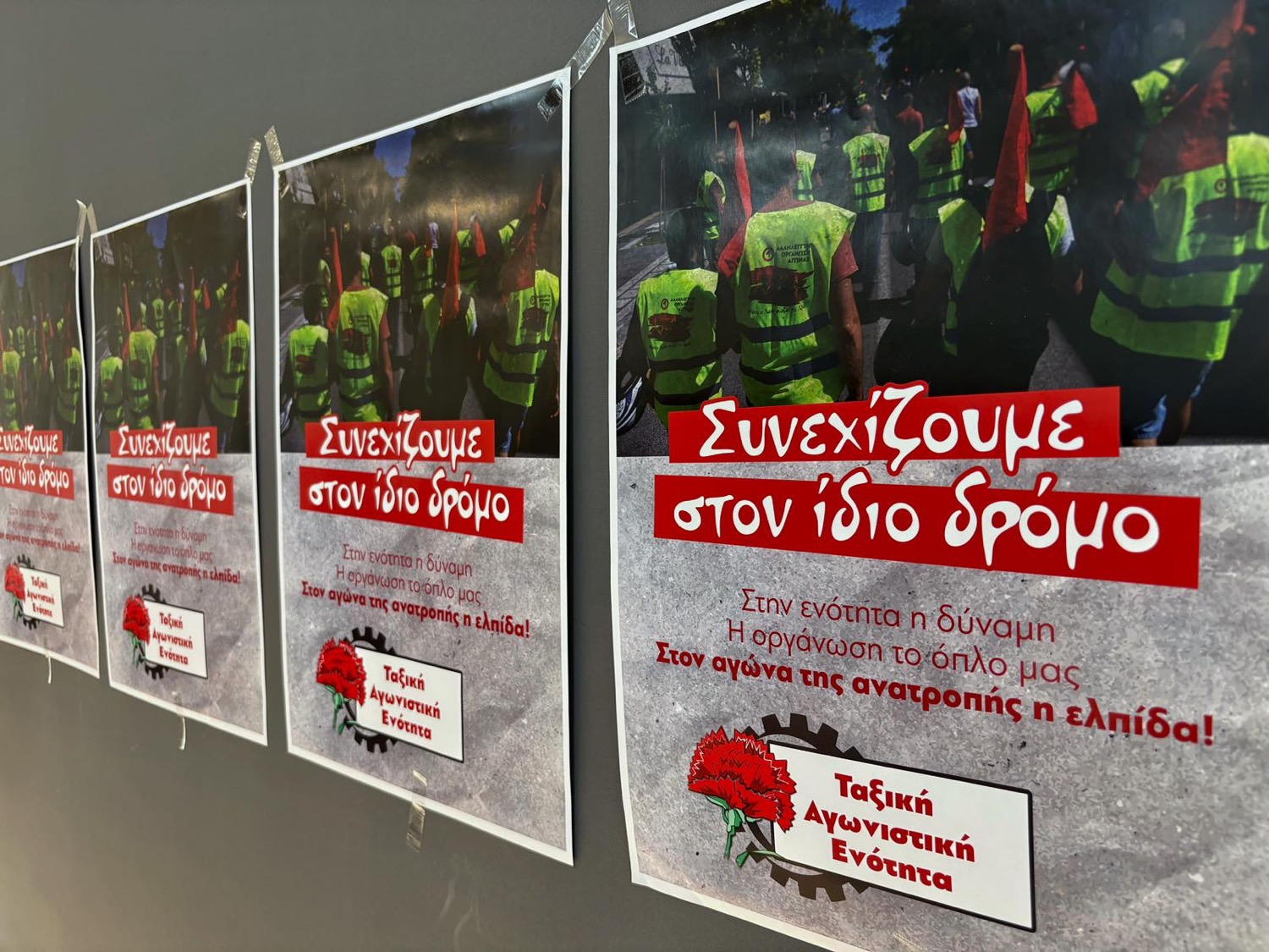 Σε αυτό τον δρόμο συνεχίζουμε κάνοντας το αποφασιστικό βήμα για την οργάνωση της πάλης µας, για να ισχυροποιηθεί το ρεύμα κοινής δράσης των συνδικάτων, µε βάση τις δικές μας ανάγκες και όχι τα κέρδη των λίγων.