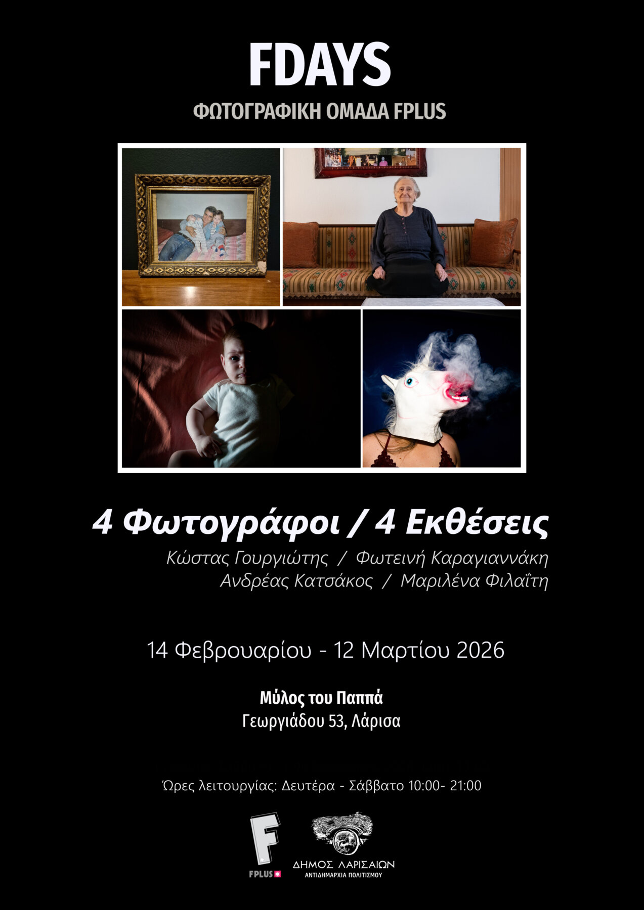 Στο πλαίσιο του προγράμματος δράσεων για το 2026, η Φωτογραφική Ομάδα fplus, σε συνεργασία με την Αντιδημαρχία Πολιτισμού του Δήμου Λαρισαίων, διοργανώνει το πρώτο FDAYS.