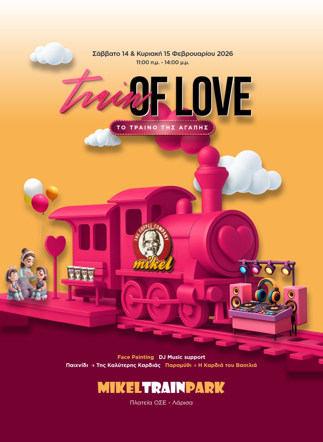 Λάρισα, 14 Φεβρουαρίου 2026 – Φέτος του Αγίου Βαλεντίνου το Mikel Train Park προσκαλεί μικρούς και μεγάλους σε μια μοναδική παιδική εκδήλωση. Το Σαββατοκύριακο 14 και 15 Φεβρουαρίου, από τις 11:00 έως τις 14:00, ο χώρος μας μεταμορφώνεται σε έναν επίγειο παράδεισο χαράς και δημιουργίας.