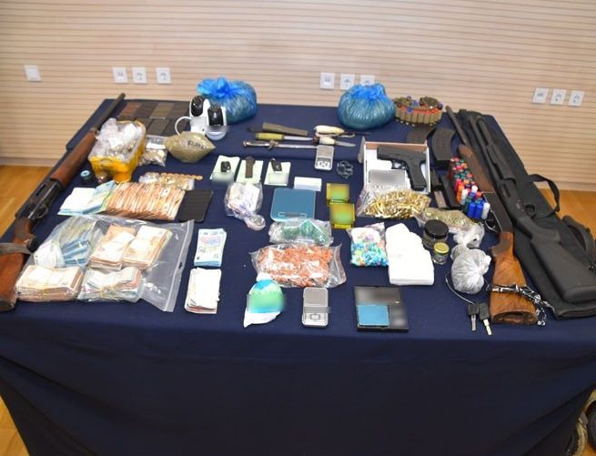 Κατασχέθηκαν, μεταξύ άλλων, -448,58- γραμμάρια κοκαΐνης, -134,74- γραμμάρια ηρωίνης, -1.243,32- γραμμάρια κάνναβης, το χρηματικό ποσό των -70.846- ευρώ, χρυσαφικά-τιμαλφή, -3- κυνηγετικά όπλα, -852- φυσίγγια, -7- Ι.Χ.Ε. αυτοκίνητα, -8- δίκυκλες μοτοσυκλέτες, -9- ηλεκτρικά πατίνια και -30- κιλά μέταλλα-χαλκός.