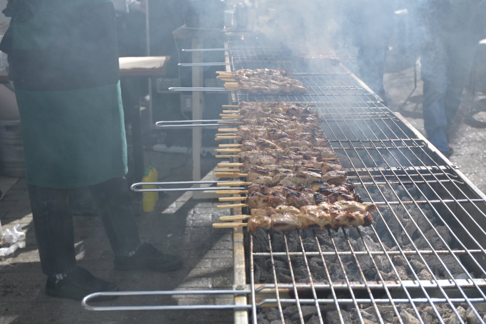 Παρέες γλεντούν, χορεύουν και τσικνίζουν στα κεντρικά καφέ της πόλης που έστησαν ψησταριές και προσφέρουν σουβλάκια και λουκάνικα συνοδεία κρασιού.