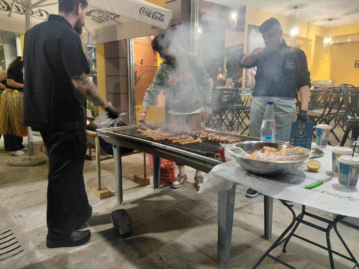 Από νωρίς, παρέες ξεχύθηκαν στους δρόμους, ενώ πολλά καταστήματα εστίασης και καφέ–μπαρ διοργανώνουν θεματικά πάρτι, ανεβάζοντας το κέφι και δίνοντας αποκριάτικο χρώμα στην αγορά. Την ίδια ώρα, δεν έλειψαν και οι παραδοσιακές σούβλες, με επαγγελματίες αλλά και παρέες φίλων να «τσικνίζουν» έξω από τα μαγαζιά, τηρώντας το έθιμο.