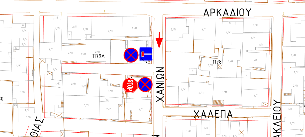 · Προτεραιότητα της οδού Χανίων, έναντι της παρόδου στο Ο.Τ.1179Α)