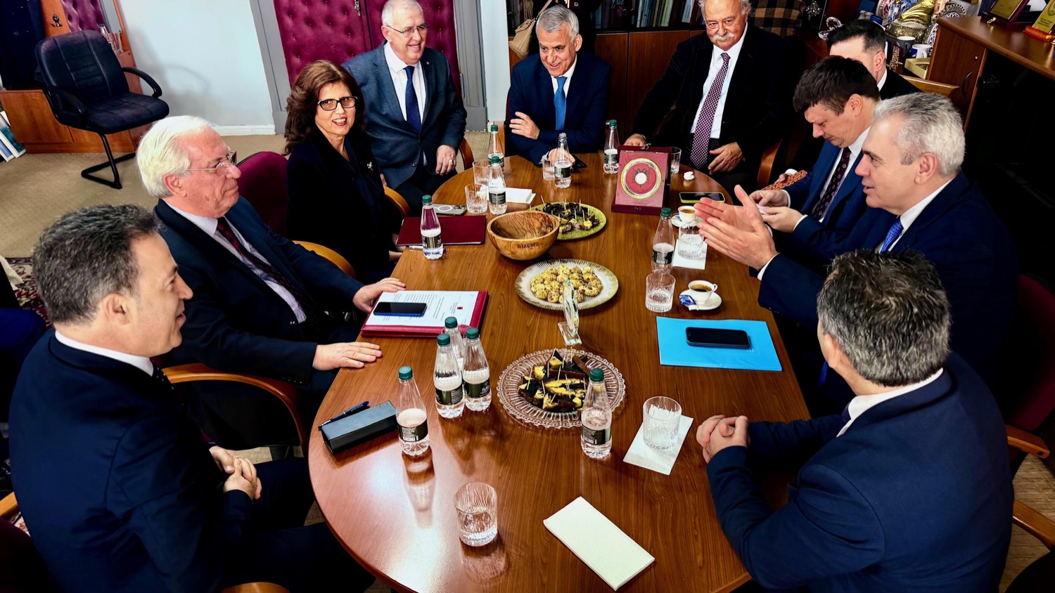 Της παρουσίασης προηγήθηκε συνάντηση της αντιπροσωπείας της ΔΣΟ με τον πρόεδρο της Ακαδημίας των Τιράνων κ. Σκέντερ Γκινιούσι.