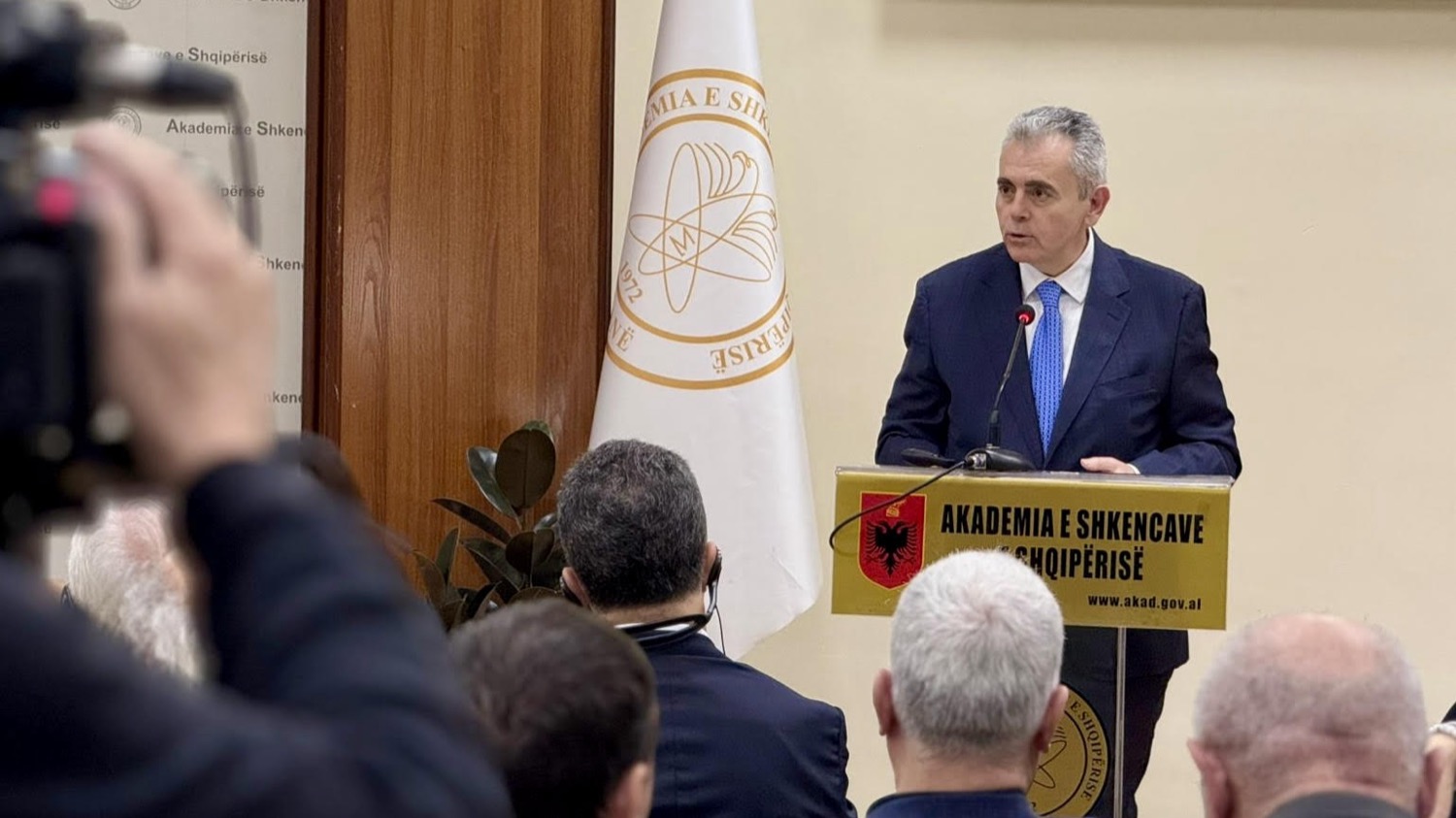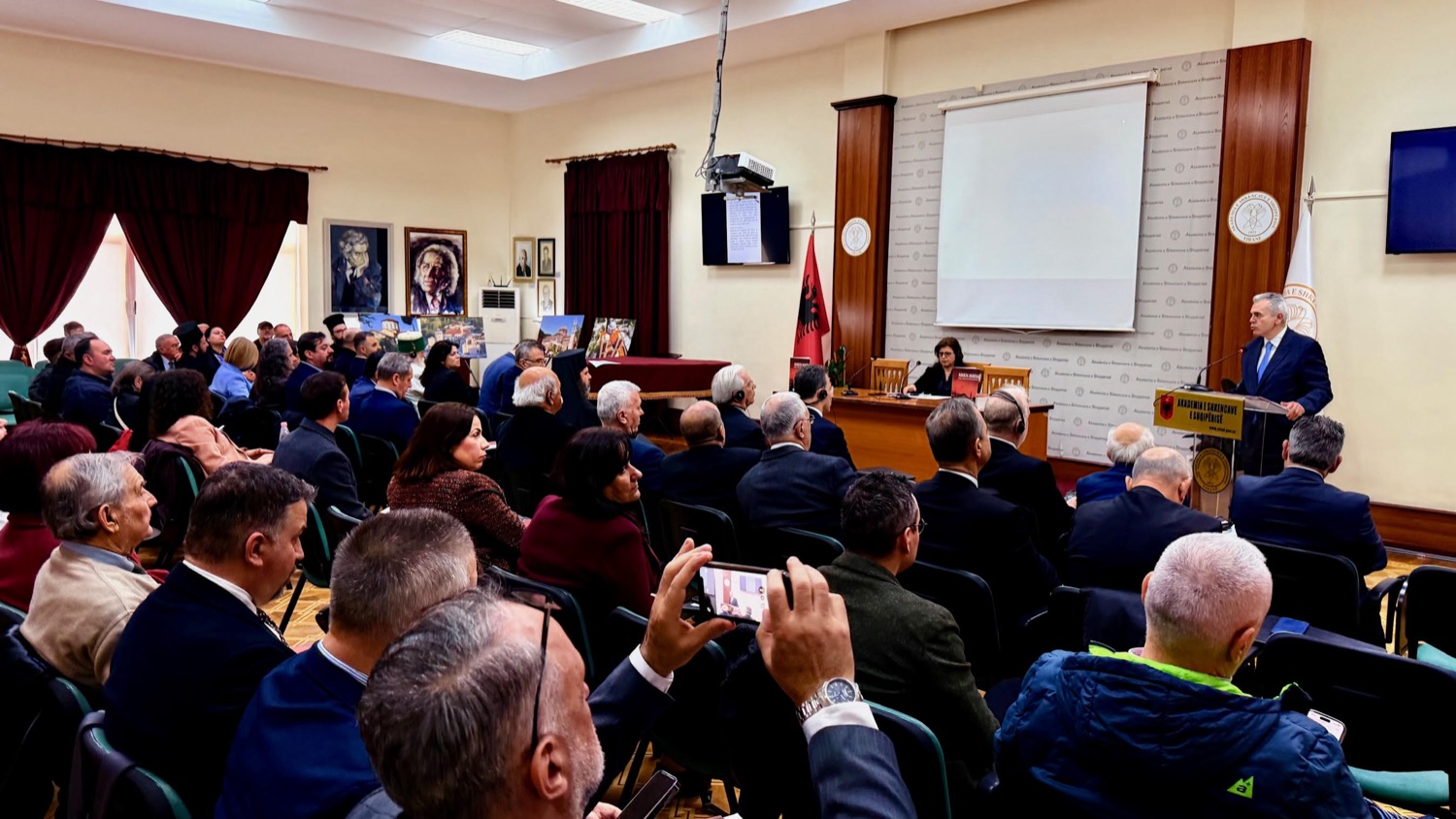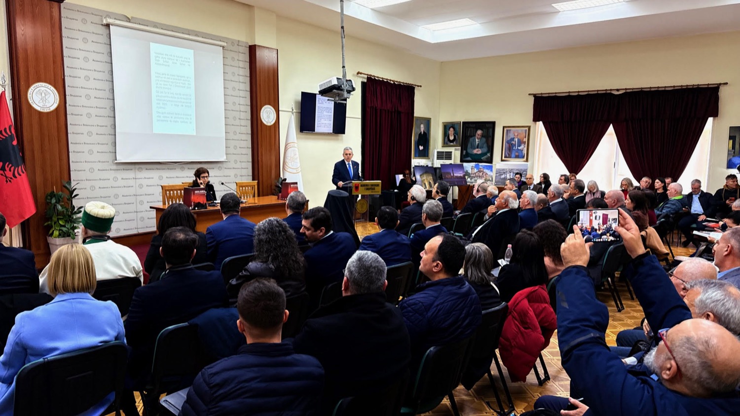 Της παρουσίασης προηγήθηκε συνάντηση της αντιπροσωπείας της ΔΣΟ με τον πρόεδρο της Ακαδημίας των Τιράνων κ. Σκέντερ Γκινιούσι.