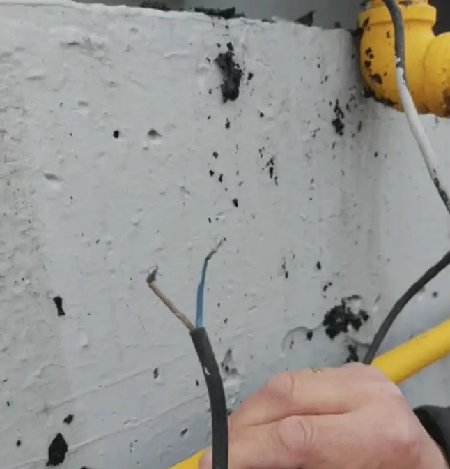 -ενώ οι ακροδέκτες της έφεραν χρώμα από τη βαφή του τοίχου, στοιχείο που ενισχύει το ενδεχόμενο να παρέμενε ασύνδετη επί μεγάλο χρονικό διάστημα.