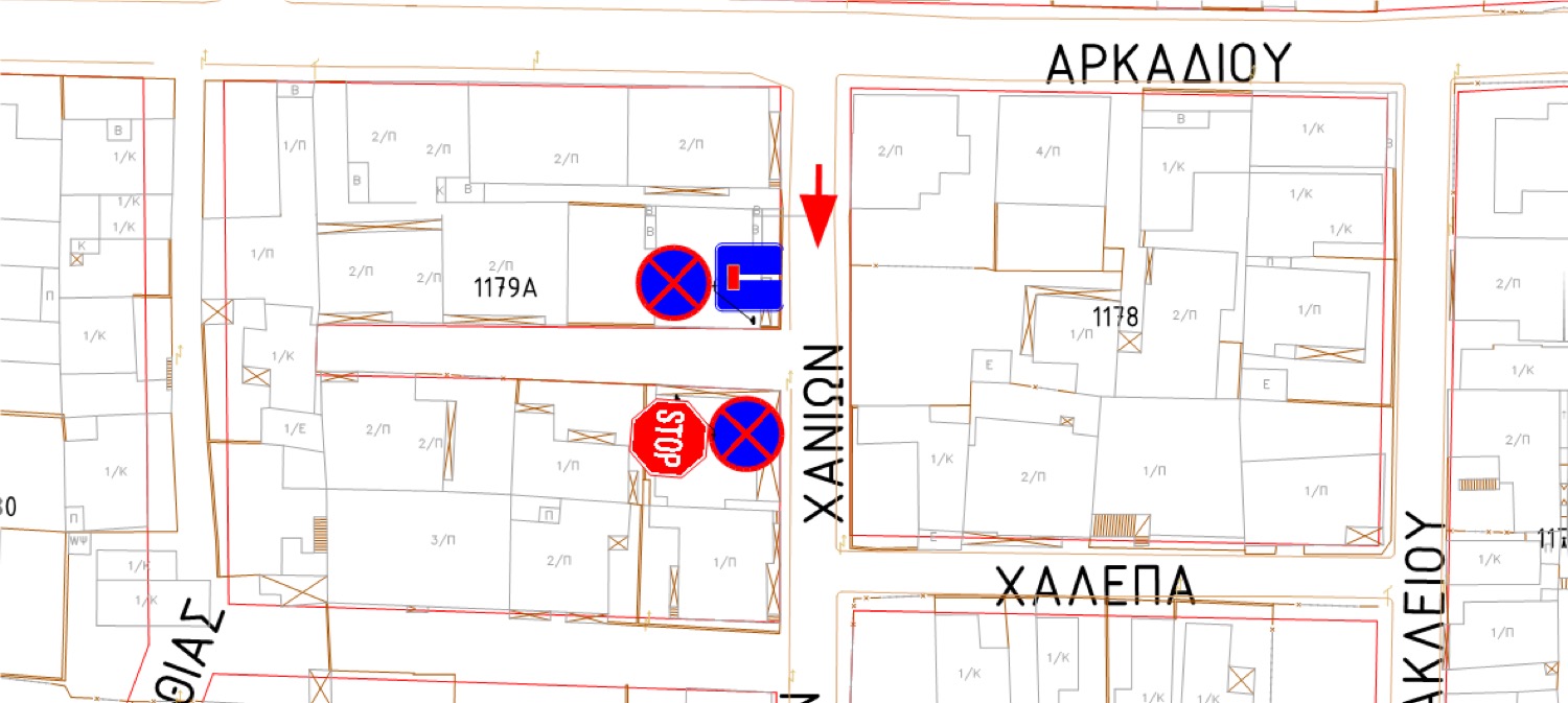 - Απαγόρευση στάσης και στάθμευσης στην πάροδο της οδού Χανίων (Ο.Τ.1179Α).