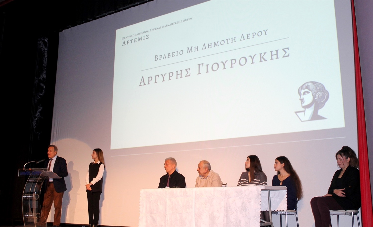 Η Λέρος βράβευσε τον Αργύρη Γιουρούκη για τη συνολική του προσφορά στο νησί, με το βραβείο του Μη Δημότη Λέρου. Το Κέντρο Πολιτισμού, Έρευνας και Ανάπτυξης Λέρου «Άρτεμις» απένειμε τα καθιερωμένα Βραβεία «Άρτεμις» (Πολιτιστικής Προσφοράς, Κοινωνικής Προσφοράς και Μη Δημότη Λέρου), στο Δημοτικό Κινηματοθέατρο Λέρου, συμπληρώνοντας φέτος τα 20 χρόνια του θεσμού. Τα βραβεία του ΚΠΕΑ Λέρου «Άρτεμις» αποτελούν έναν θεσμό τιμής, μνήμης κι έμπρακτης αναγνώρισης ανθρώπων και φορέων, που με το έργο τους αφήνουν ουσιαστικό αποτύπωμα στο νησί, απονέμονται ανά διετία σε φορείς ή πρόσωπα, ως αναγνώριση της συνολικής τους προσφοράς και της διαχρονικής τους συμβολής στον πολιτισμό, το κοινωνικό έργο, καθώς και την προβολή της Λέρου και του έργου της «Άρτεμις» στην Ελλάδα και διεθνώς.