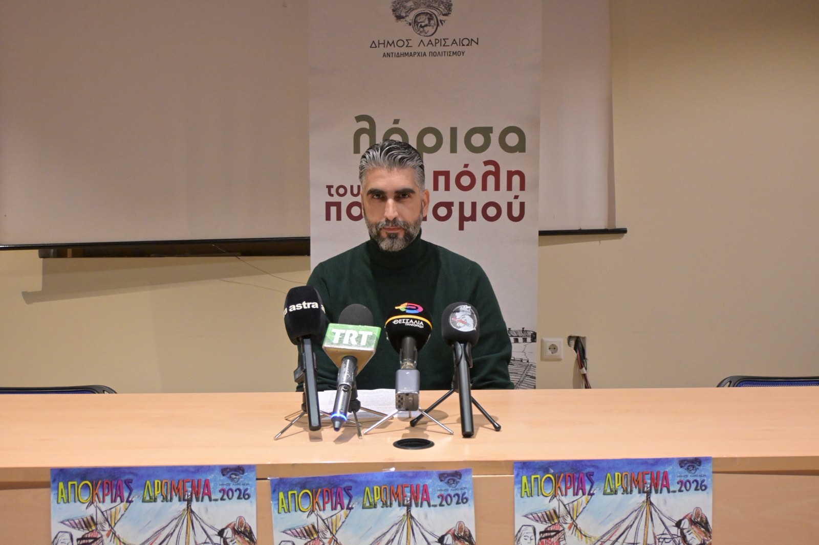 Φέτος έχουμε ήδη, πέρα από τις λέσχες και τις κοινότητες, τις λέσχες πολιτισμού του Δήμου Λαρισαίων και τις κοινότητες, έχουμε ήδη πάνω από 16-17 συλλόγους ήδη συμμετέχοντες, και θα ήθελα σήμερα από αυτό το βήμα να καλέσω και όλους τους υπόλοιπους συλλόγους οι οποίοι επιθυμούν να συμμετέχουν στις φωτιές, αλλά και το Σάββατο το μεσημέρι στην Κεντρική πλατεία, στο γαϊτανάκι και στον χορό που θα γίνει, να έρθουν να συμμετέχουν και να διασκεδάσουμε όλοι μαζί στην πλατεία».