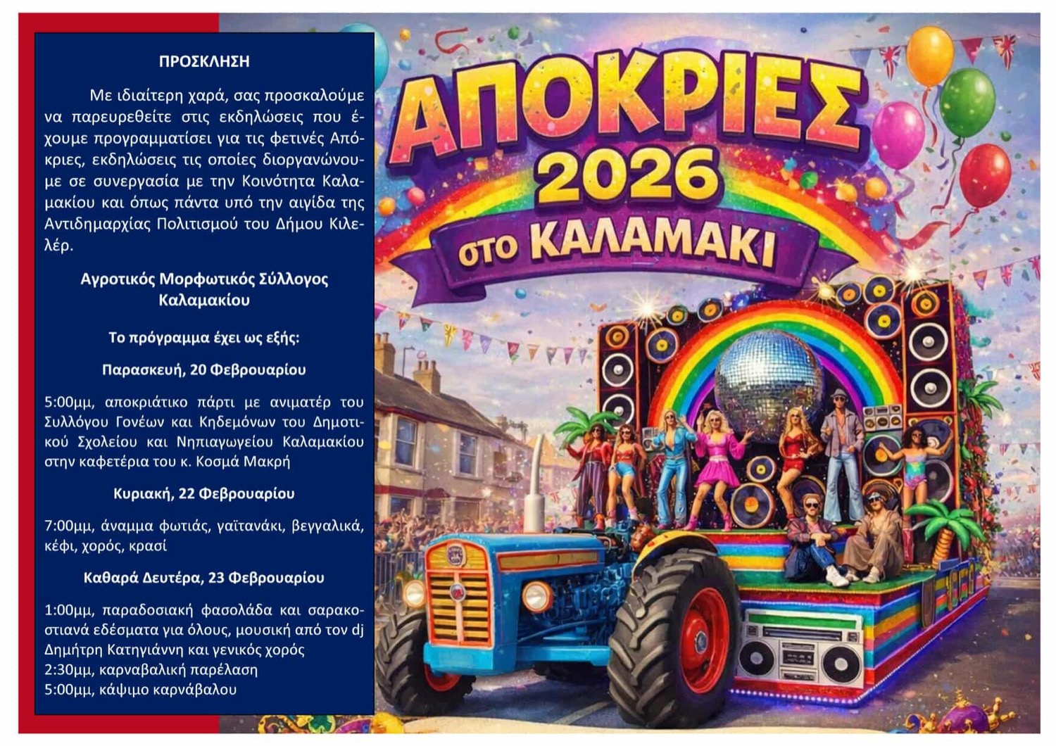 Αποκριάτικες εκδηλώσεις στο Δήμο Κιλελέρ