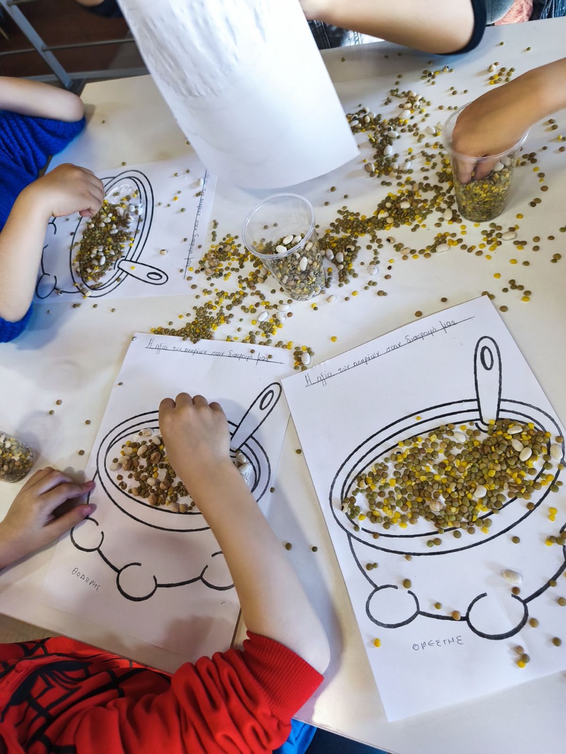 Εν συνεχεία, τα παιδιά έλαβαν μέρος σε εκπαιδευτικά, διαδραστικά παιχνίδια ( κολάζ, χειροτεχνίες με όσπρια κλπ), με στόχο την ενίσχυση των γνώσεών τους και την υιοθέτηση σωστών διατροφικών συνηθειών.