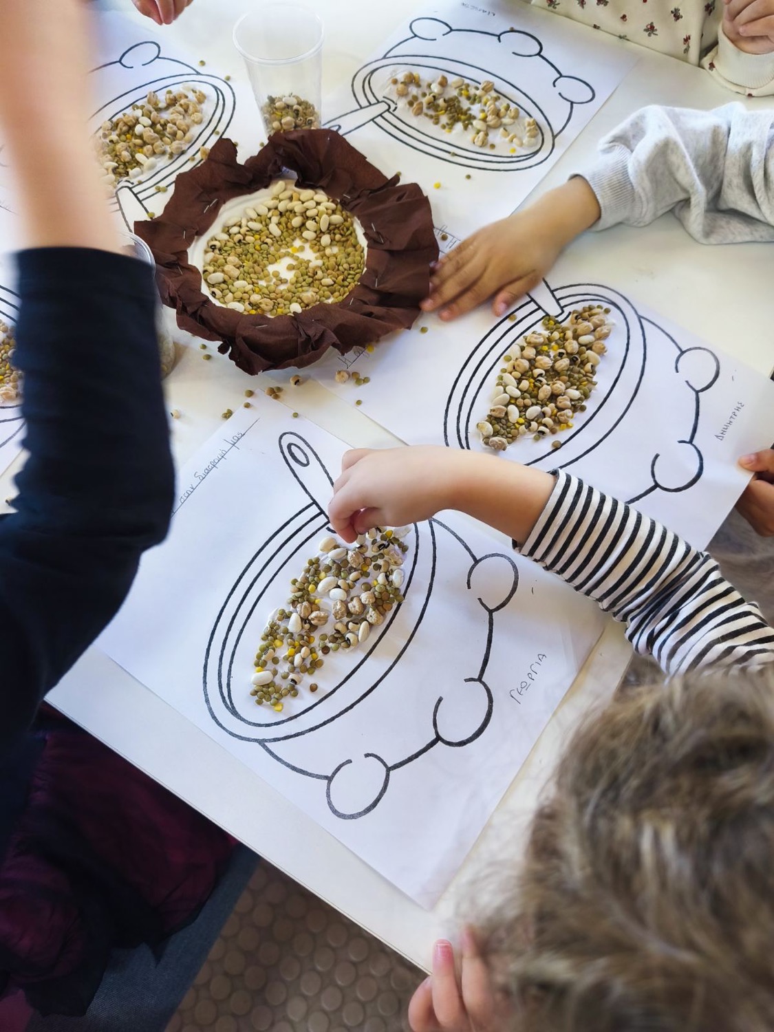 Εν συνεχεία, τα παιδιά έλαβαν μέρος σε εκπαιδευτικά, διαδραστικά παιχνίδια ( κολάζ, χειροτεχνίες με όσπρια κλπ), με στόχο την ενίσχυση των γνώσεών τους και την υιοθέτηση σωστών διατροφικών συνηθειών.